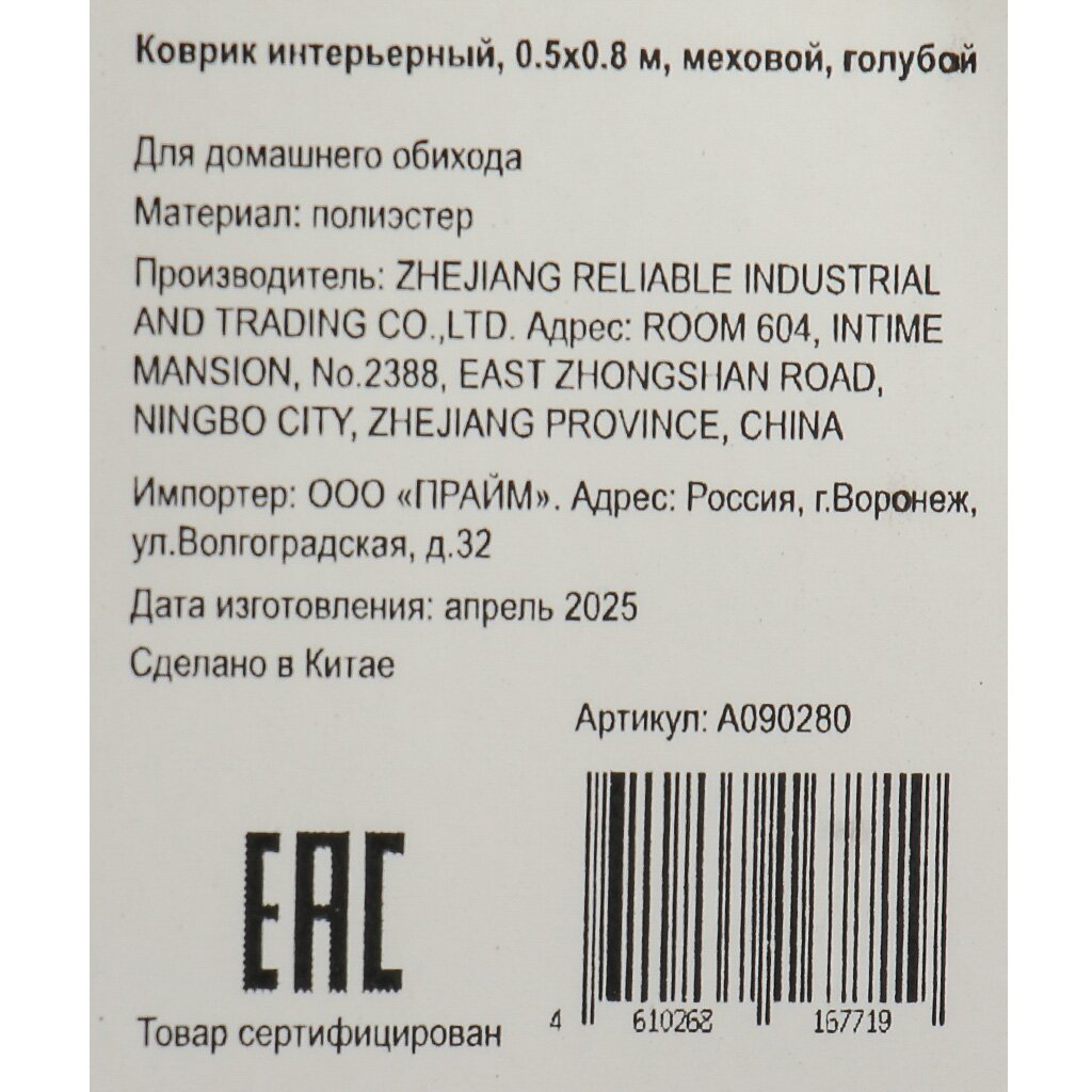 Вы можете приобрести «Коврик интерьерный 0.5х0.8 м, прямоугольный, голубой, искусственный мех, A090280» и другие товары в нашем интернет-магазине в Липецке по низким ценам и с бесплатным самовывозом.