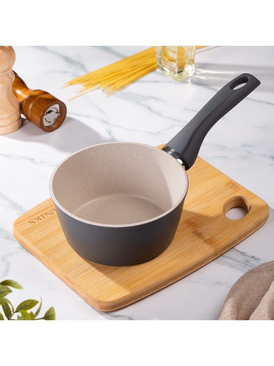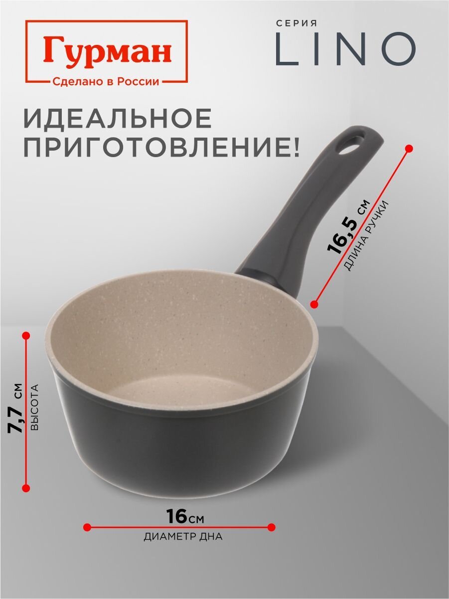 Ковш "Гурман Lino" обладает ключевыми характеристиками, которые делают его незаменимым на кухне. Антипригарное покрытие гарантирует, что пища не пригорит, и процесс приготовления станет легким и приятным. Пластиковая ручка обеспечивает удобный хват, не нагревается и позволяет безопасно манипулировать ковшом во время готовки. Толщина дна 3 мм и стенок 2.4 мм способствует равномерному распределению тепла, что особенно важно для сохранения вкуса и аромата блюд.