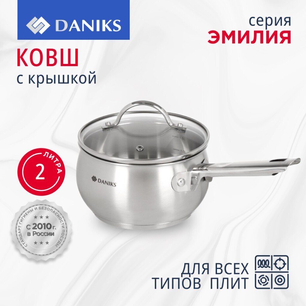 Вы можете приобрести «Ковш нержавеющая сталь, 2 л, крышка стекло, ручка нержавеющая сталь, индукция, Daniks, Эмилия, CW-W075-16S» и другие товары в нашем интернет-магазине в Нижнем Новгороде по низким ценам и с бесплатным самовывозом.