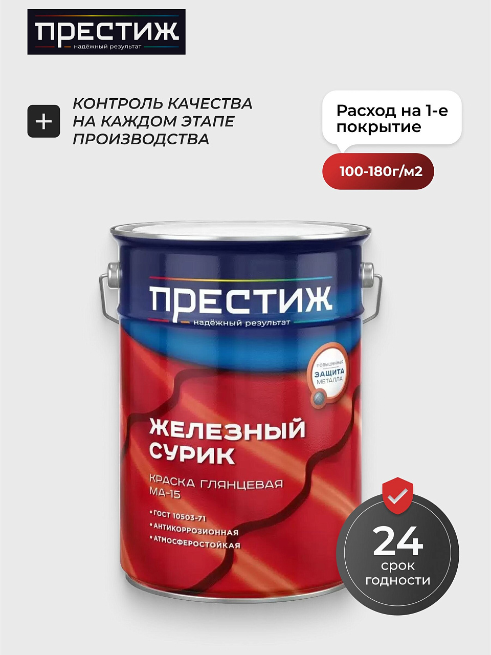 Вы можете приобрести «Краска Престиж, Сурик МА-15, масляная, универсальная, глянцевая, 10 кг» и другие товары в нашем интернет-магазине в Белгороде по низким ценам и с бесплатным самовывозом.