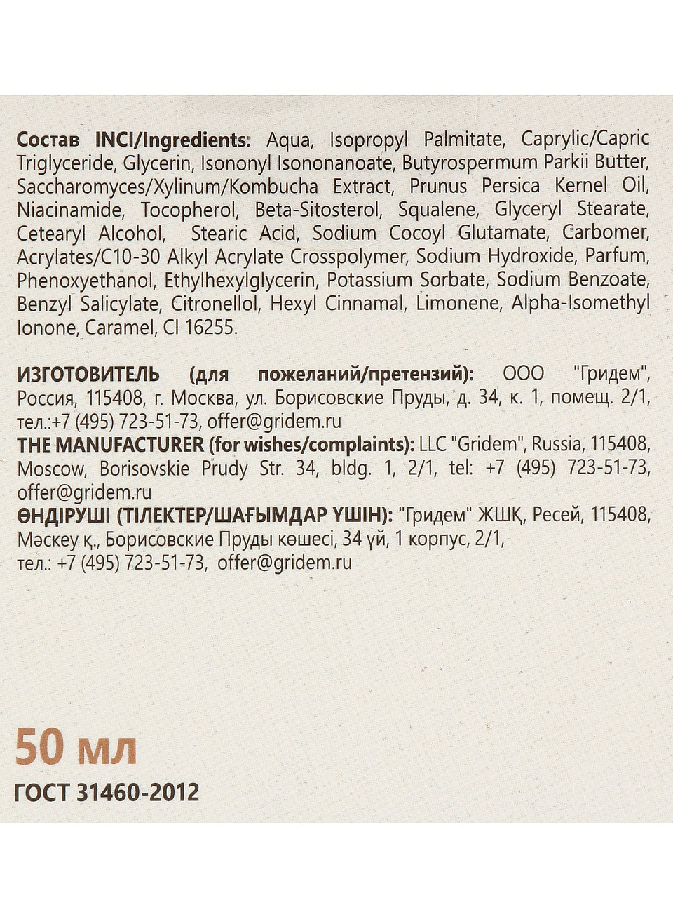 Объём 50 мл рассчитан на 1-2 месяца использования при нанесении утром и вечером на лицо и шею.