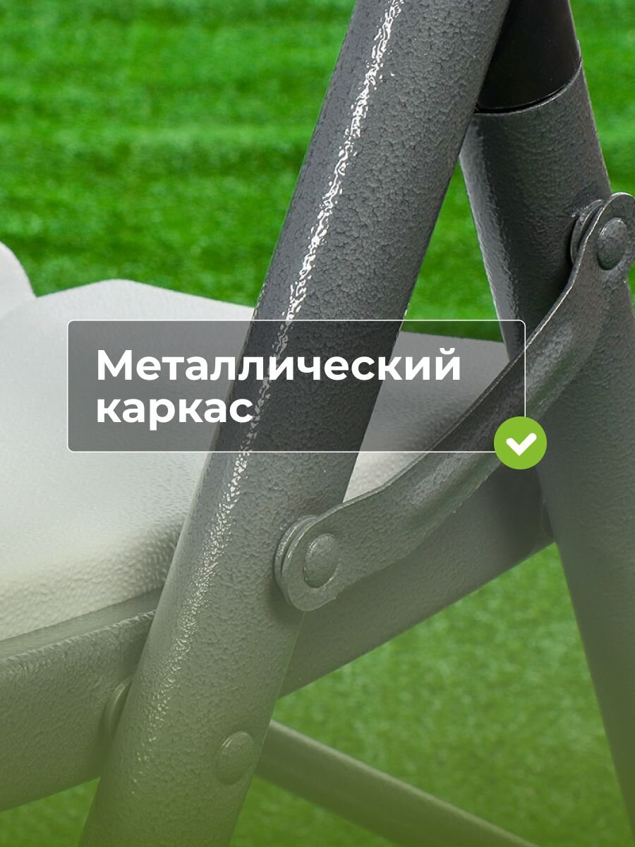 - Металлический каркас обеспечивает высокую прочность и устойчивость к внешним воздействиям, таким как влага и перепады температур. Это делает стул идеальным для использования на открытом воздухе.