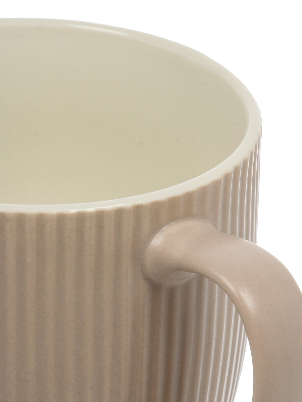 Керамика лучше сохраняет тепло, не нагревает ручку, не впитывает запахи и не влияет на вкус напитка. Гранёный дизайн делает кружку эстетичной и удобной для захвата.