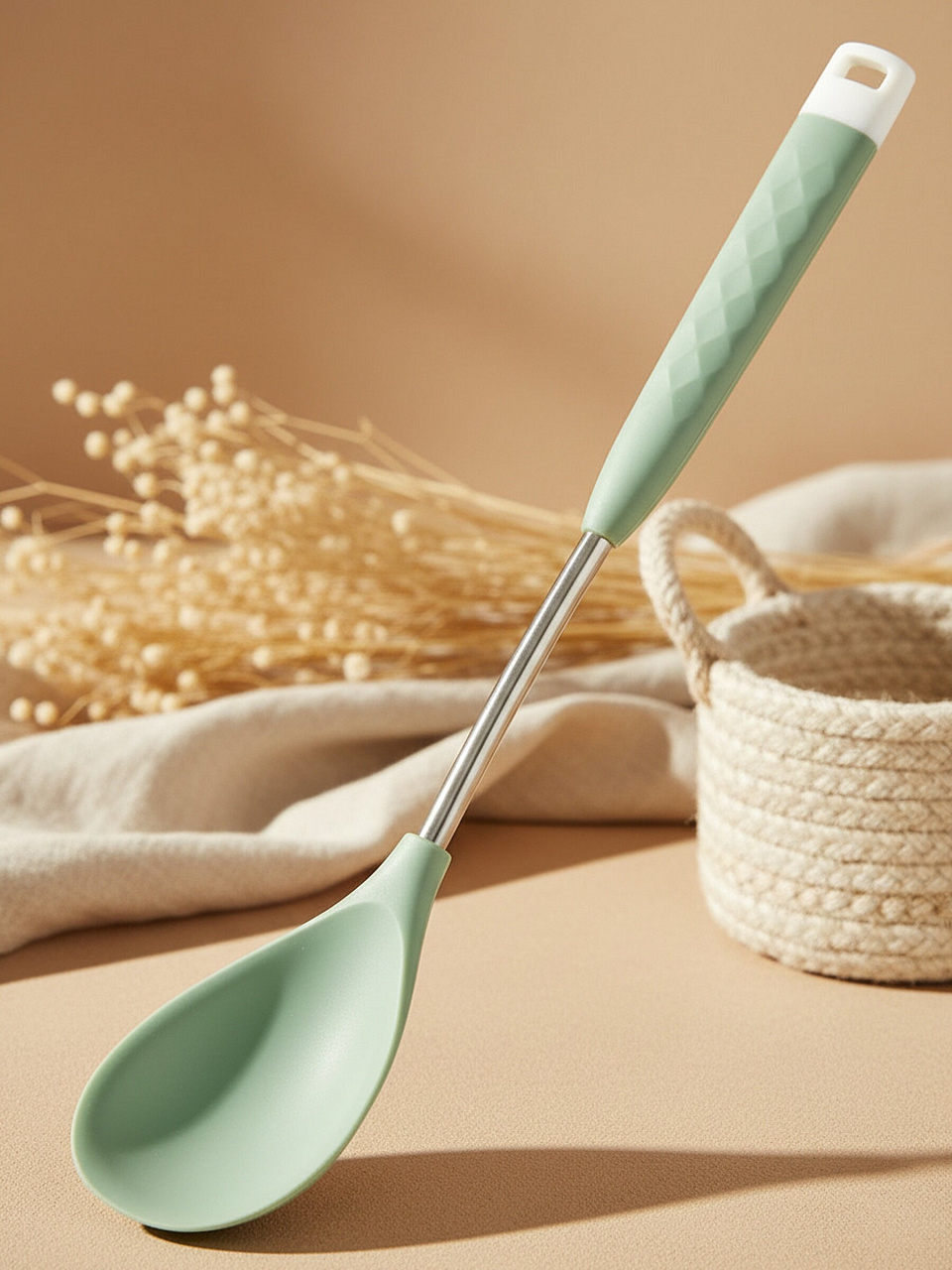 В отличие от деревянных или металлических аналогов, силиконовая ложка не царапает антипригарное покрытие, устойчива к деформации и не нагревается. Если вы ищете, какую ложку выбрать для дачи или для подарка, обратите внимание на возможность подвески: ложка оснащена отверстием для хранения на крючке. Для семей с детьми или аллергиков силикон — безопасный материал, не выделяющий вредных веществ даже при длительном контакте с горячими блюдами.