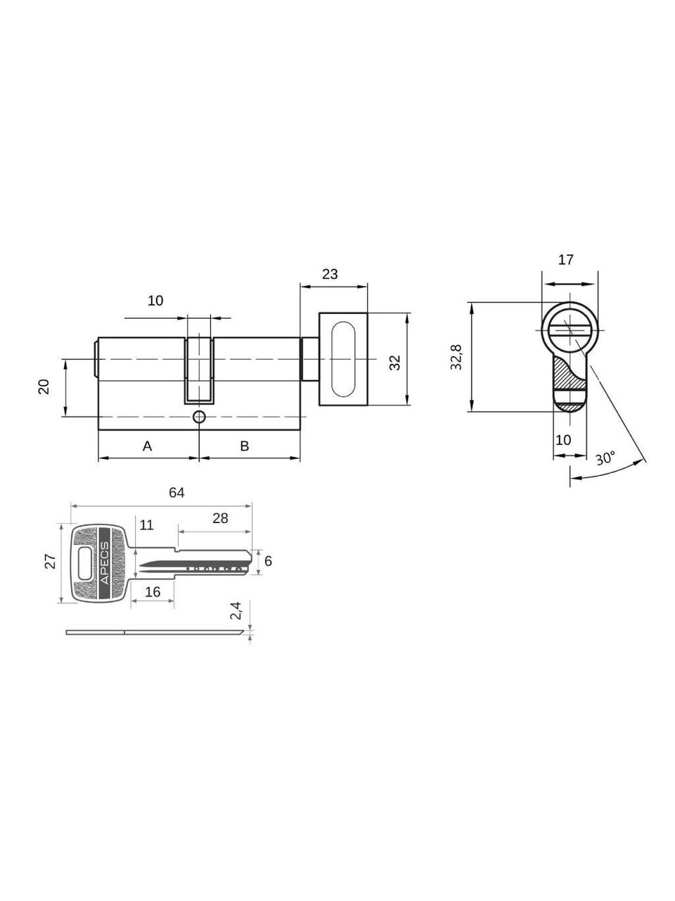 Цилиндровые механизмы Apecs - оптимальное предложение по качеству в сегменте латунных цилиндров, предназначенных для входных дверей. В цилиндровых механизмах Apecs реализована защита от бампинга, манипуляционных методов вскрытия, высверливания.
