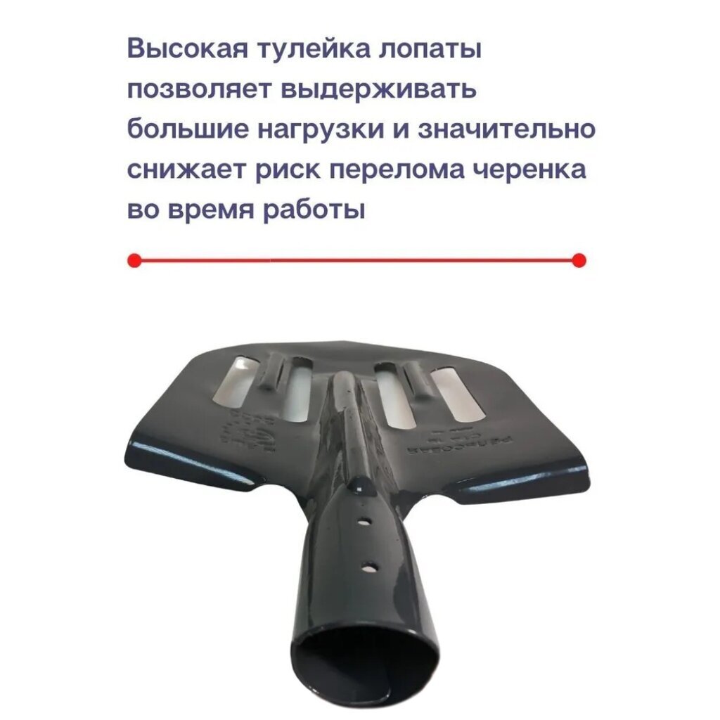 Штыковая облегченная лопата предназначена для копки грунта разного типа, плотности и влажности. Лопата имеет специальные продольные вырезы в рабочем полотне, что облегчает вес и работу с грунтом повышенной влажности или глиной, за счет меньшей площади соприкосновения грунта с поверхностью лопаты. Верхняя кромка рабочего полотна закруглена, что создает наступ для нажатия ногой. Меньший вес позволяет увеличить производительность труда при вскапывании земельного участка и расширить круг пользователей.