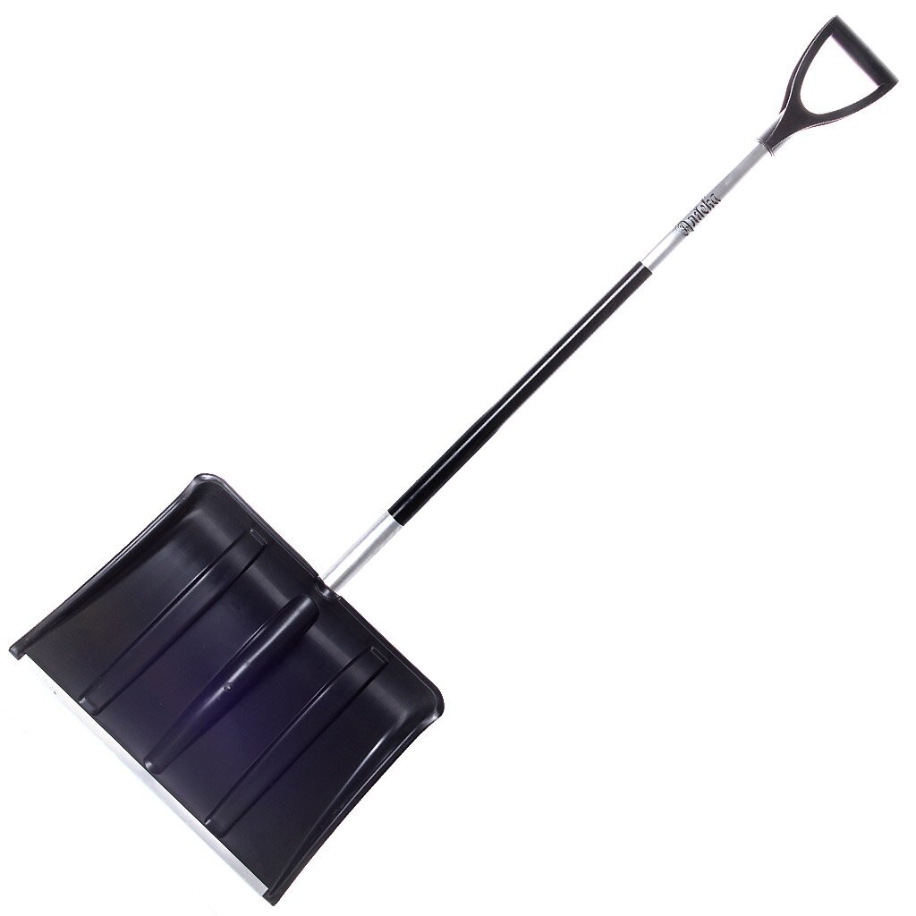 - Большой ковш 500×375 мм и облегчённый алюминиевый черенок диаметром 32 мм — удобно для быстрой расчистки снега на участке любого размера