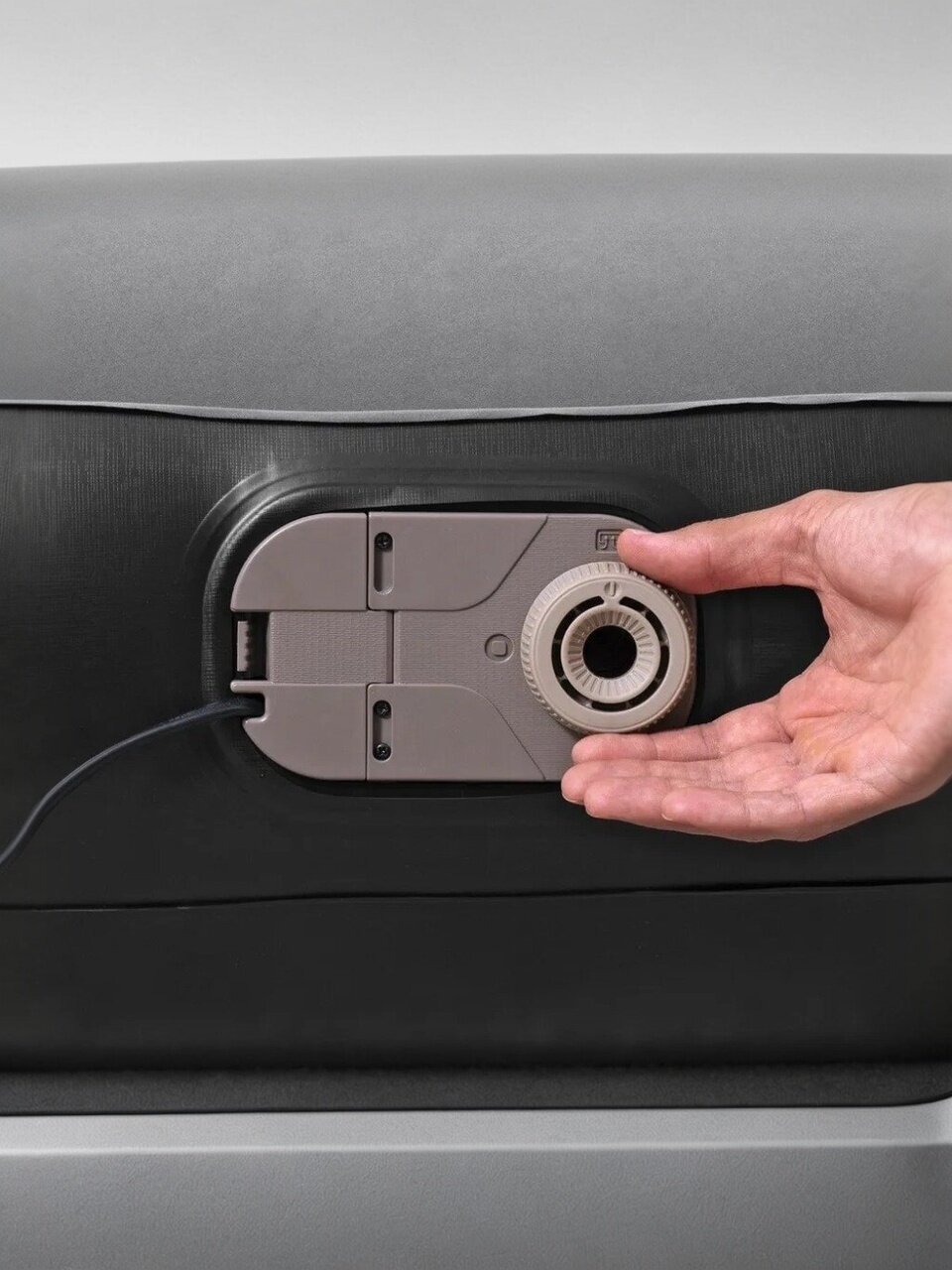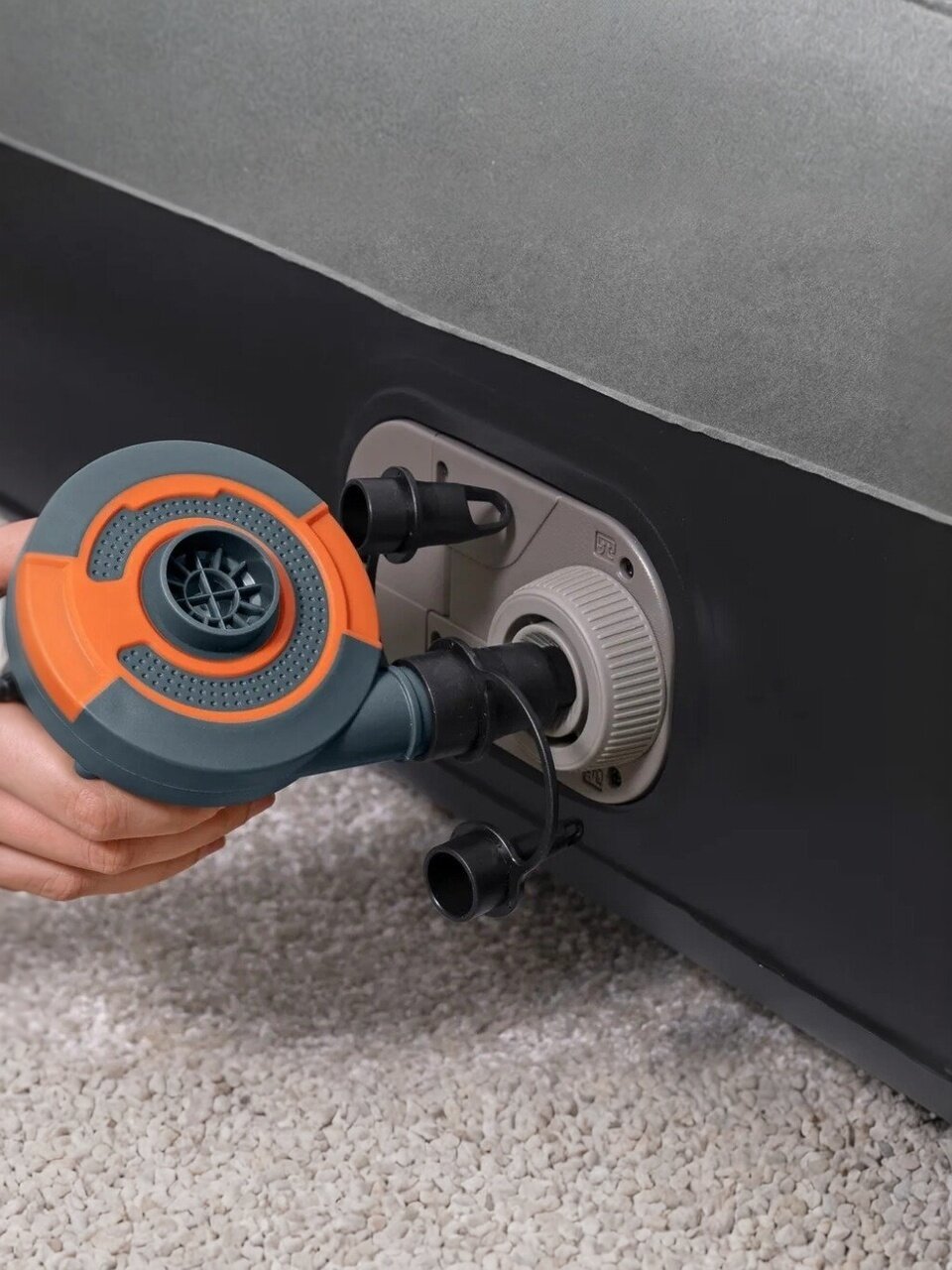 - Матрас можно надуть за короткое время, просто подключив его к источнику питания и нажав кнопку.