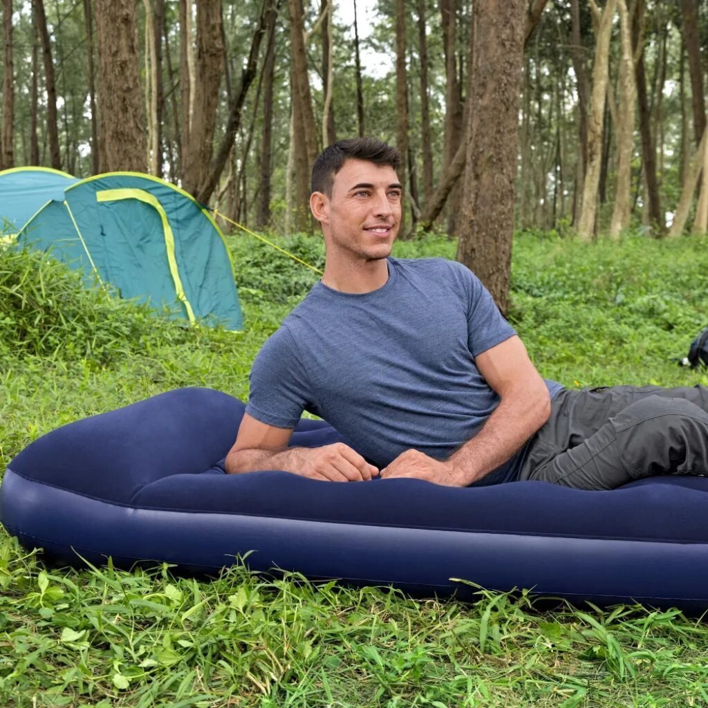 Надувной матрас может заменить громоздкую и занимающую много места раскладушку, что особенно полезно при приёме гостей или в условиях ограниченного пространства квартиры. Его также возможно использовать для отдыха на природе: он легко помещается в багажник автомобиля и обеспечивает комфортный отдых на свежем воздухе. Товар поставляется в полной комплектации, приобретение отдельных элементов не представляется возможным.Матрас оснащен встроенным механическим ножным насосом, который позволяет за несколько минут надувать и сдувать матрас.