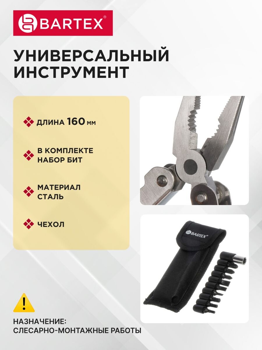 Вы можете приобрести «Мультитул-трансформер 15 функций, 160 мм, Bartex, AI-2904011» и другие товары в нашем интернет-магазине в Ставрополе по низким ценам и с бесплатным самовывозом.
