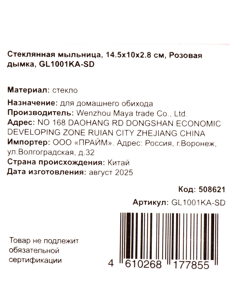 Размер 14.5x10x2.8 см, настольный тип, материал — стекло, цвет — розовый, без присосок, артикул GL1001KA-SD.