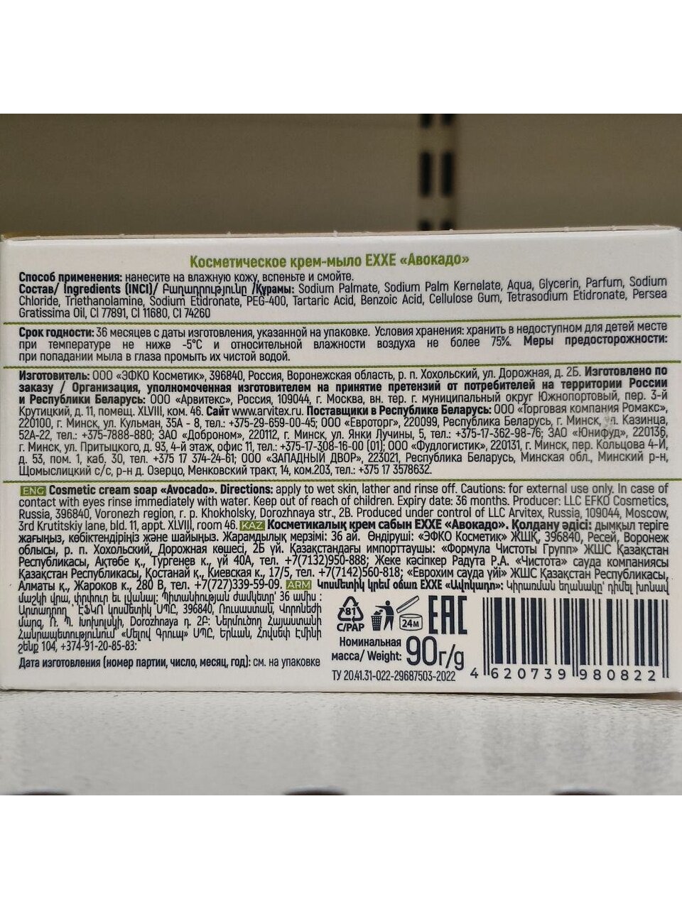 Вы можете приобрести «Крем-мыло косметическое Exxe, Авокадо, 90 г» и другие товары в нашем интернет-магазине в Белгороде по низким ценам и с бесплатным самовывозом.