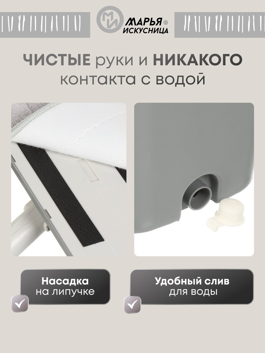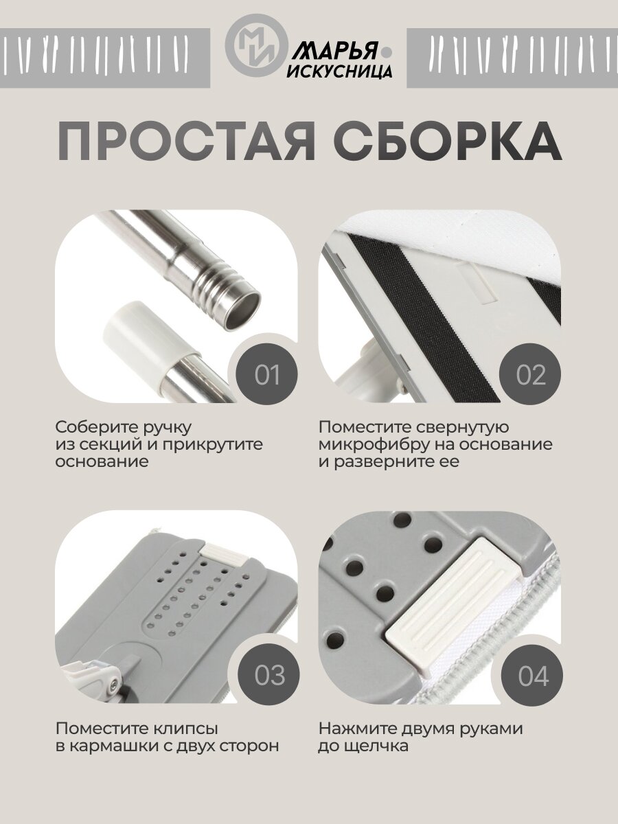 Набор выполнен в стильном сером цвете, который подойдет к любому интерьеру. Бренд "Марья Искусница" гарантирует качество и долговечность. Модель BCLEAN специально разработана для влажной уборки, что позволяет легко и без усилий справляться с любыми загрязнениями на полу. Изготовленный из прочного пластика и металла, набор обеспечивает надежность и долговечность в использовании.