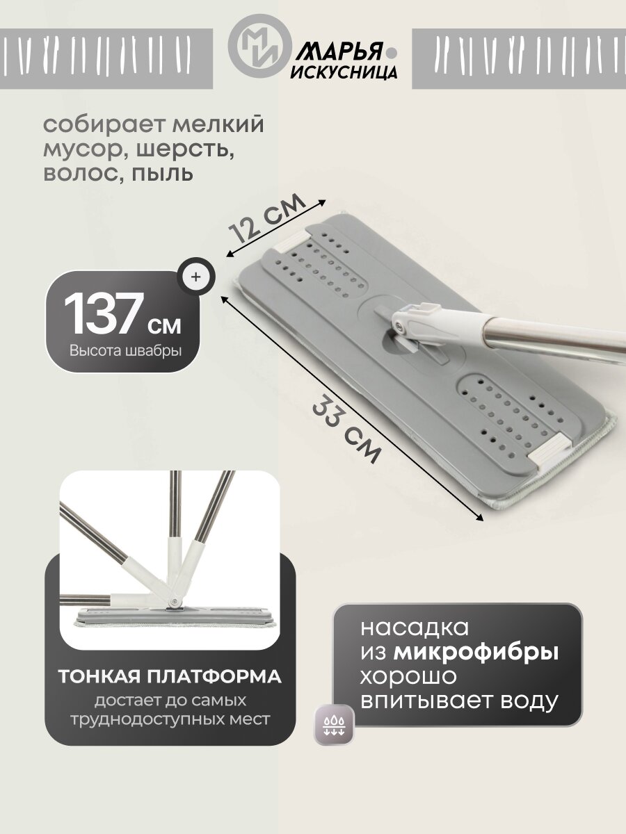 - швабра из микрофибры: эффективно собирает пыль и грязь, не оставляя разводов;