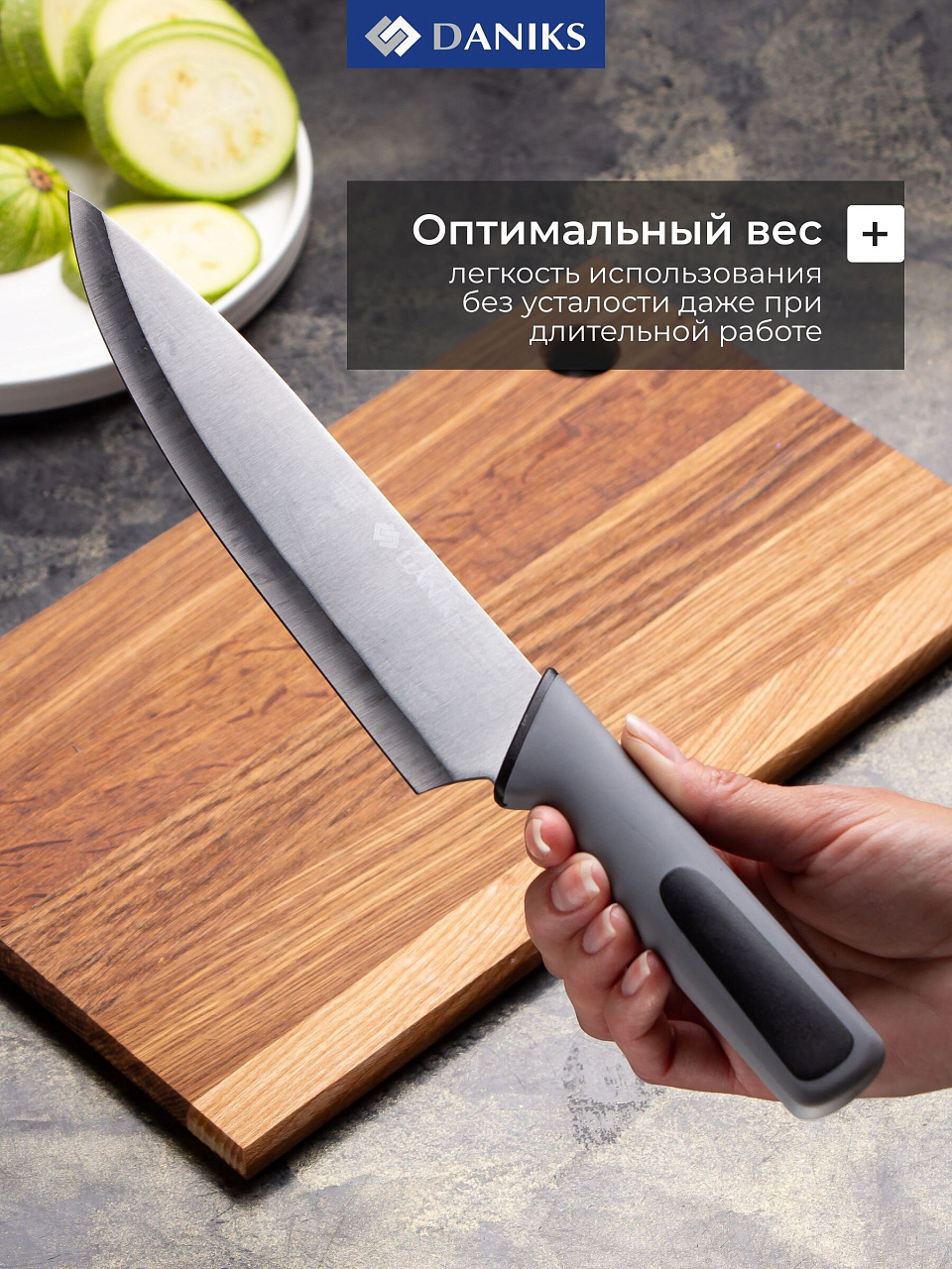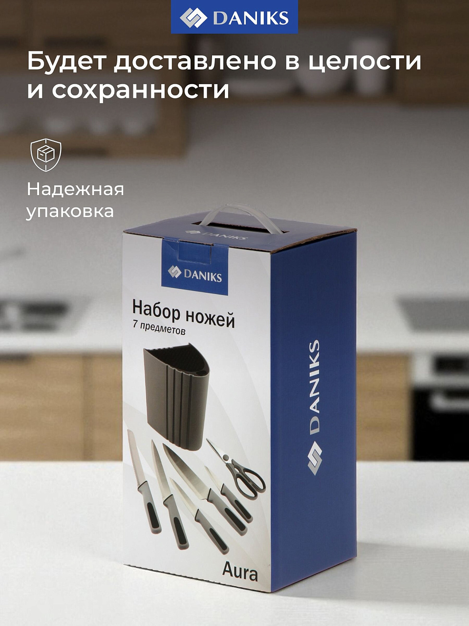 Покупка набора ножей Daniks Aura — это инвестиция в удобство и порядок на кухне. Прочный материал лезвий гарантирует идеальный результат нарезки, а продуманная комплектация избавляет от необходимости приобретать дополнительные инструменты. Экономия времени на приготовление блюд, легкость ухода и стильный внешний вид — выгода, которую оценит каждый, кто ценит комфорт и функциональность в доме. Daniks Aura станет надежным помощником и украсит любую кухню.