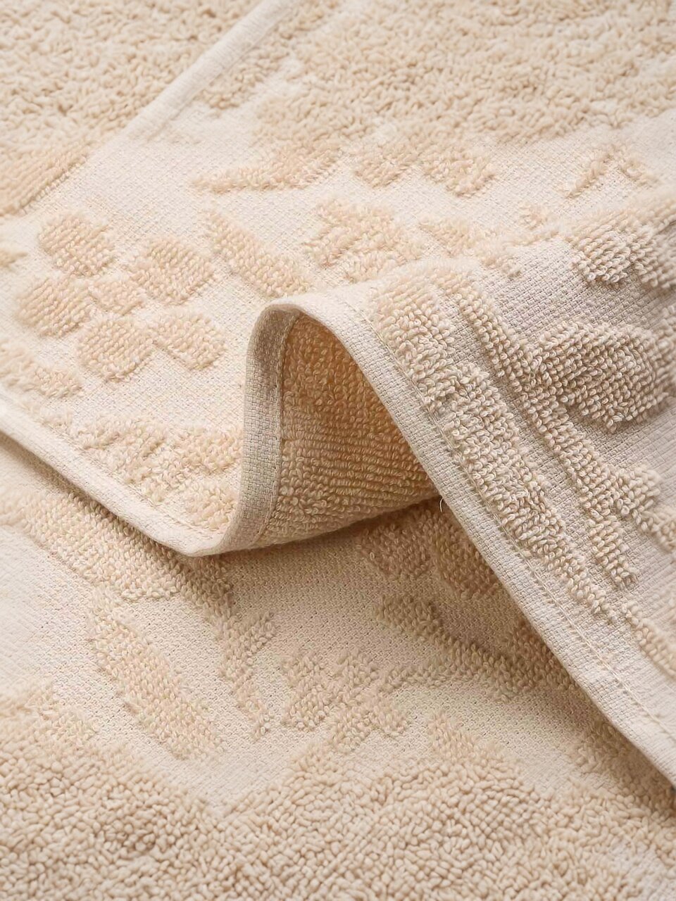 В отличие от синтетических аналогов, натуральный хлопок быстрее сохнет, не вызывает раздражения и не теряет цвет после стирки. Если вы выбираете, чем отличается полотенце для дома и дачи, обратите внимание на универсальные размеры: одно полотенце идеально для лица и рук, второе — для тела. Лаконичный бежевый цвет и изысканный рисунок "цветы" впишутся в любой интерьер.