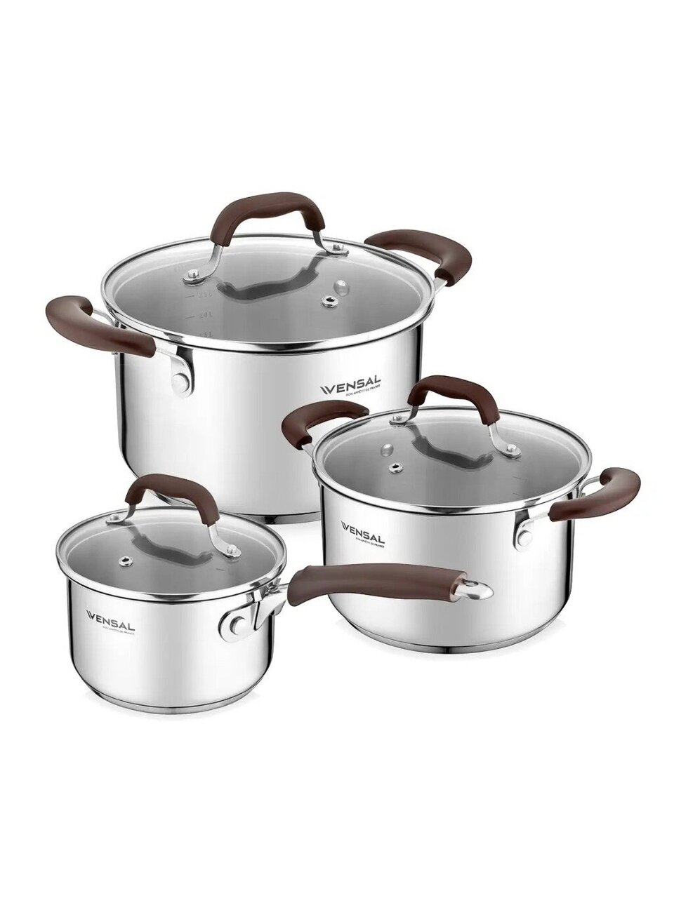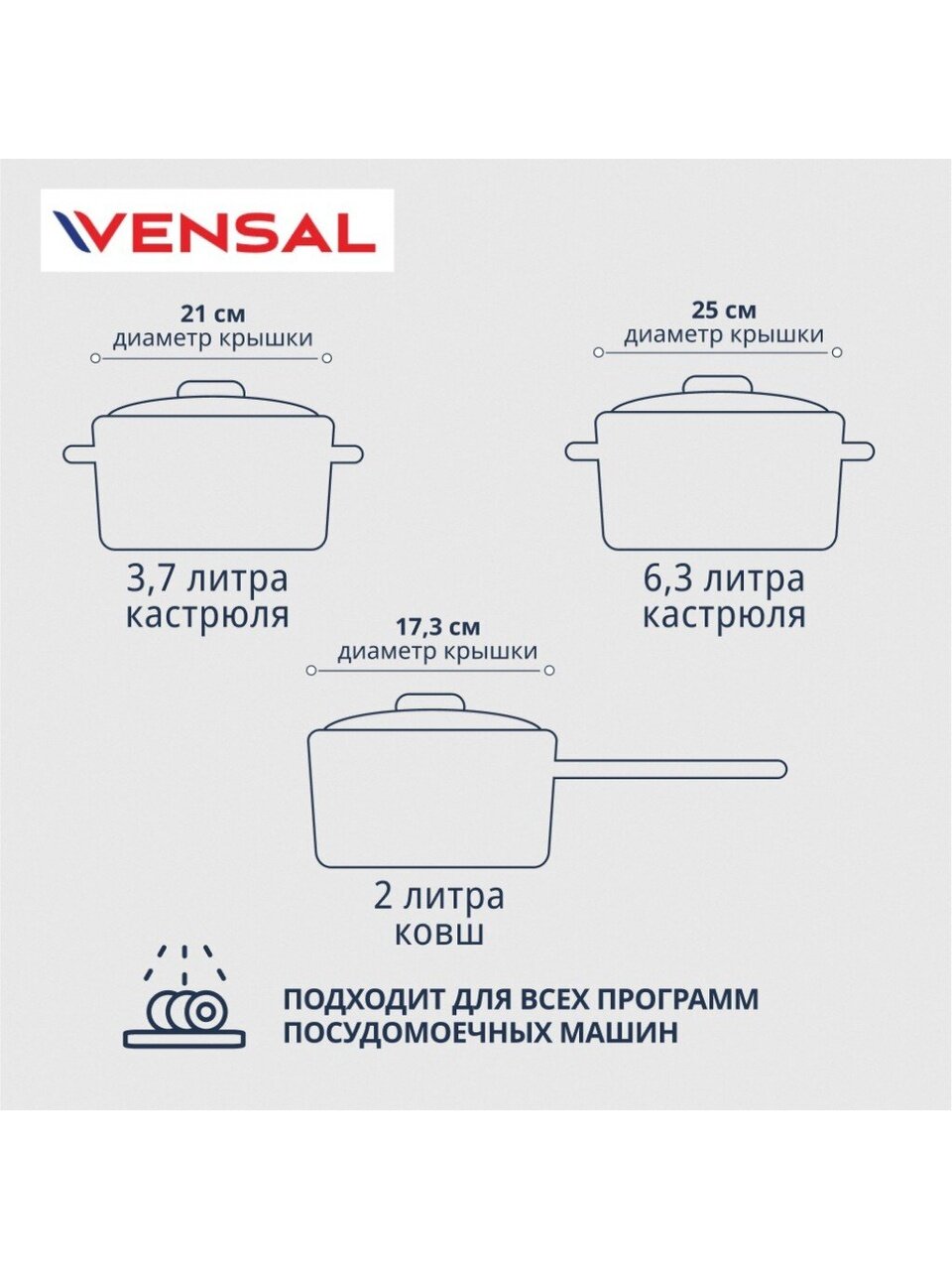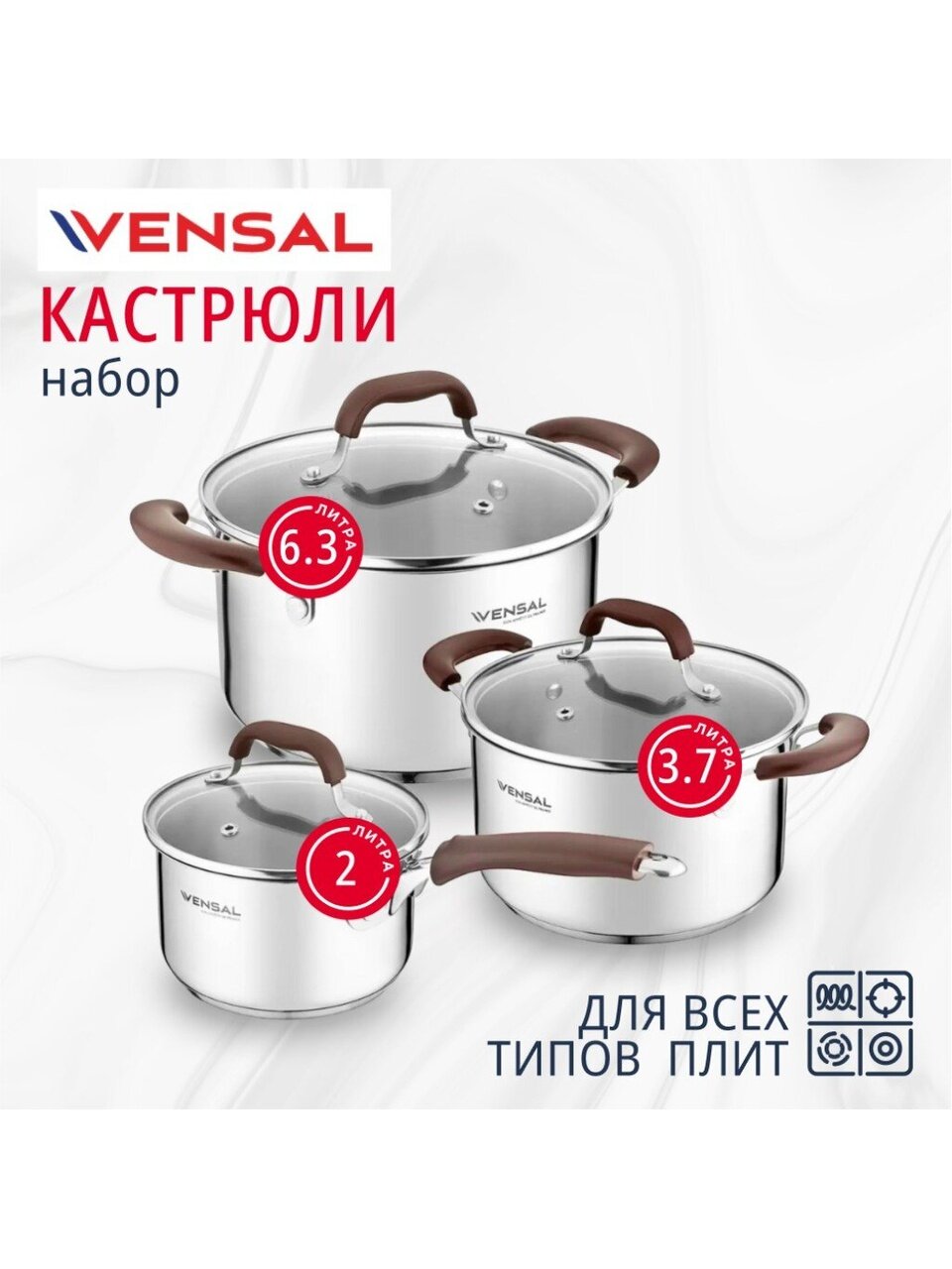 Премиальный набор посуды из нержавеющей стали Vensal Coquet: 6 предметов для индукции, идеален для дома, дачи и подарка. Долговечность и стиль в каждой детали.