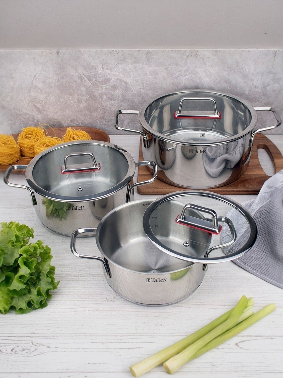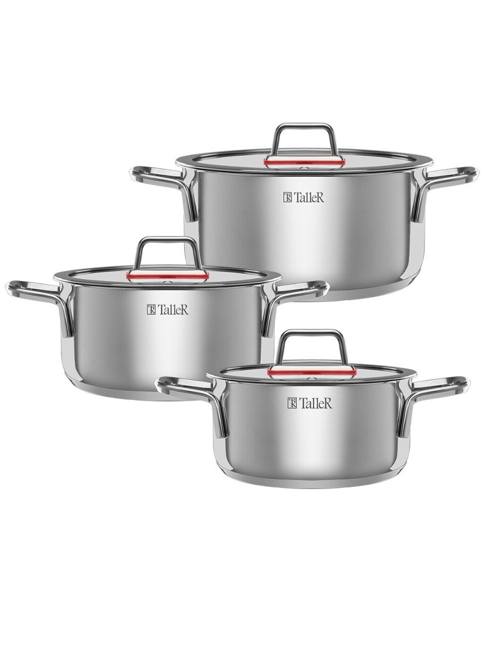 Премиальный набор посуды Taller Тенденси: 3 предмета из нержавеющей стали для индукционных плит. Идеально для дома, дачи и подарка — долговечность и стиль.