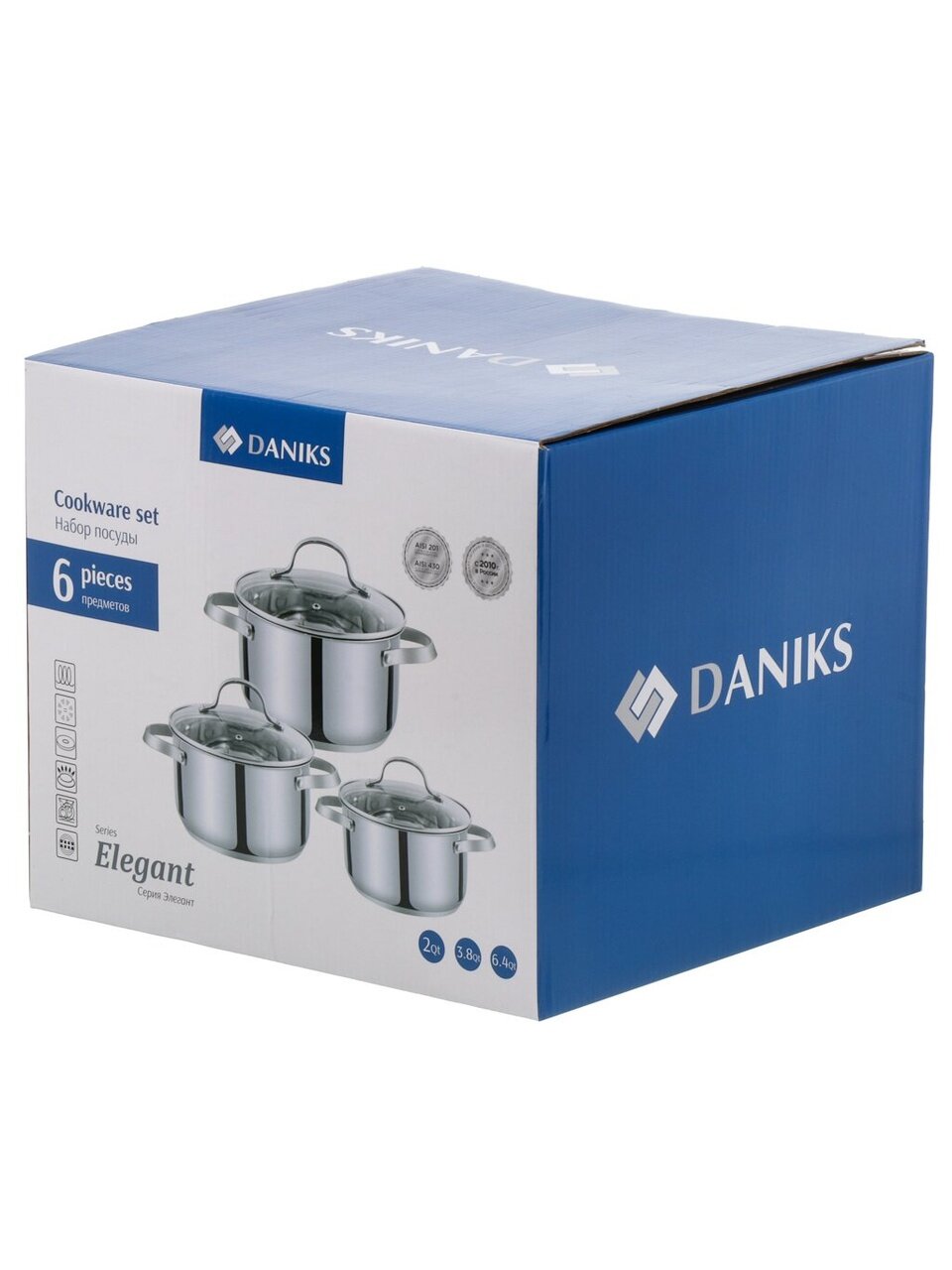 Ищете, какой набор кастрюль выбрать для индукционной плиты или универсального использования? Daniks Элегант — это оптимальное сочетание цены, качества и функциональности. Благодаря трём объёмам (1.9, 3.6, 6.1 л) вы сможете приготовить как небольшие порции, так и обед для большой компании. Набор посуды из нержавеющей стали подходит для газовых, индукционных, стеклокерамических и электрических плит, а также отличается устойчивостью к коррозии и простотой ухода.