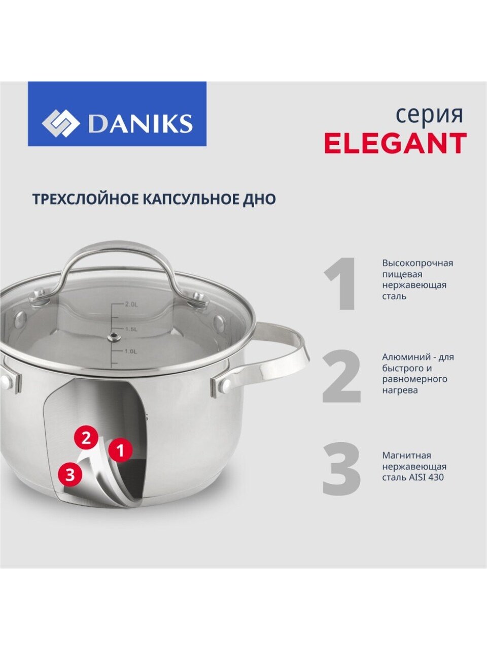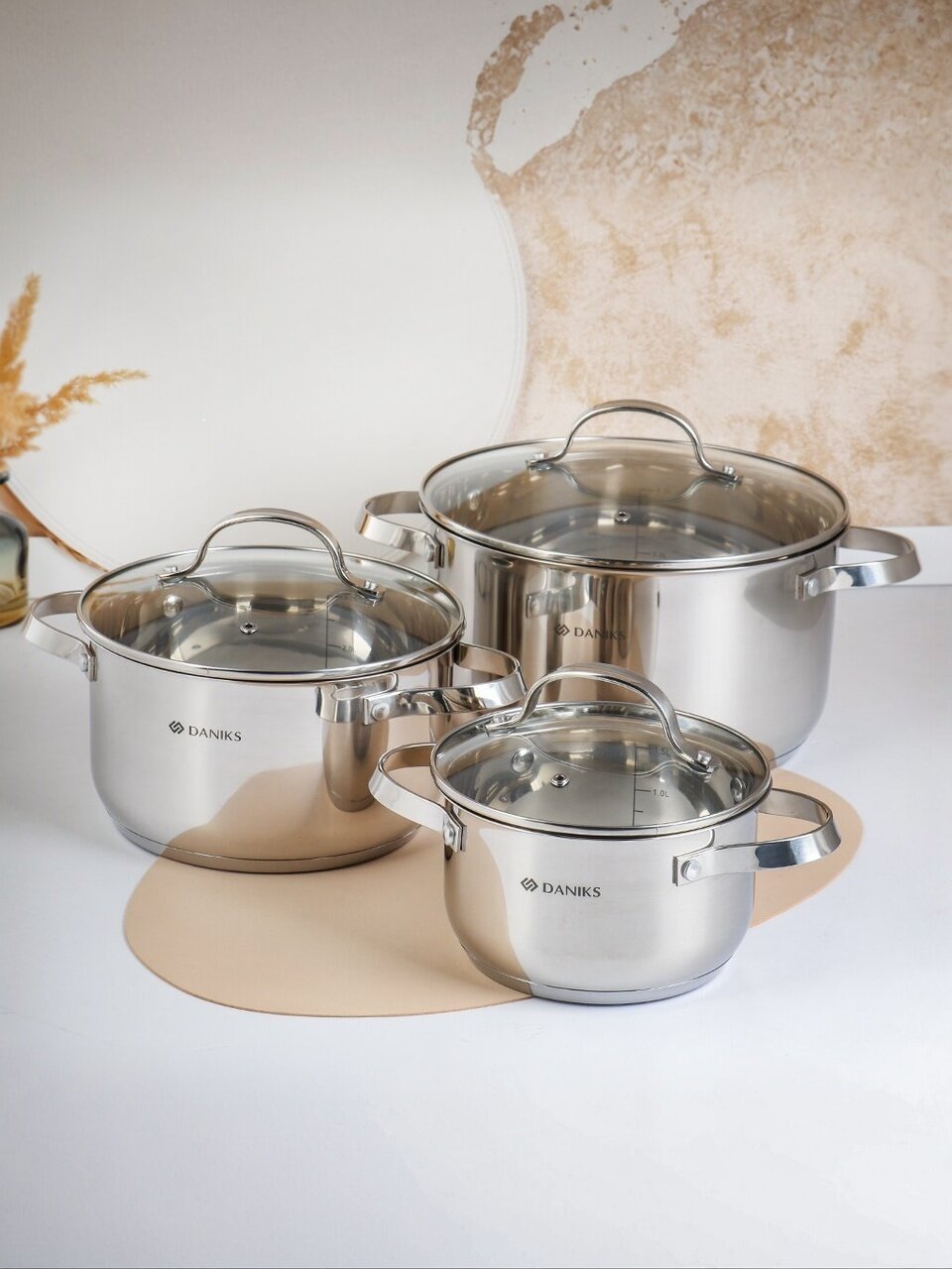 Чтобы купить недорого набор кастрюль из нержавеющей стали для дома или дачи, выбирайте Daniks Элегант — официальная гарантия, быстрая доставка и поддержка на всех этапах покупки. Закажите сейчас и убедитесь в удобстве и долговечности посуды!