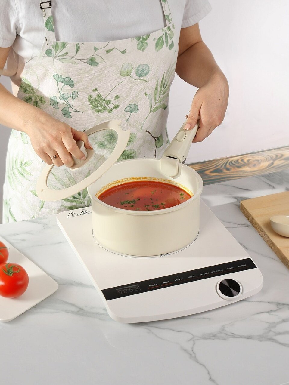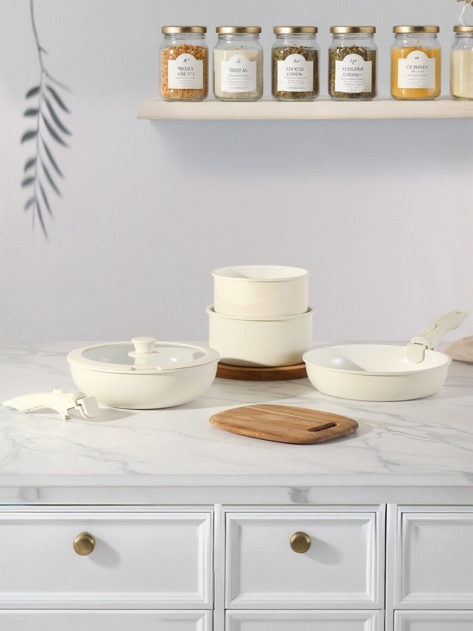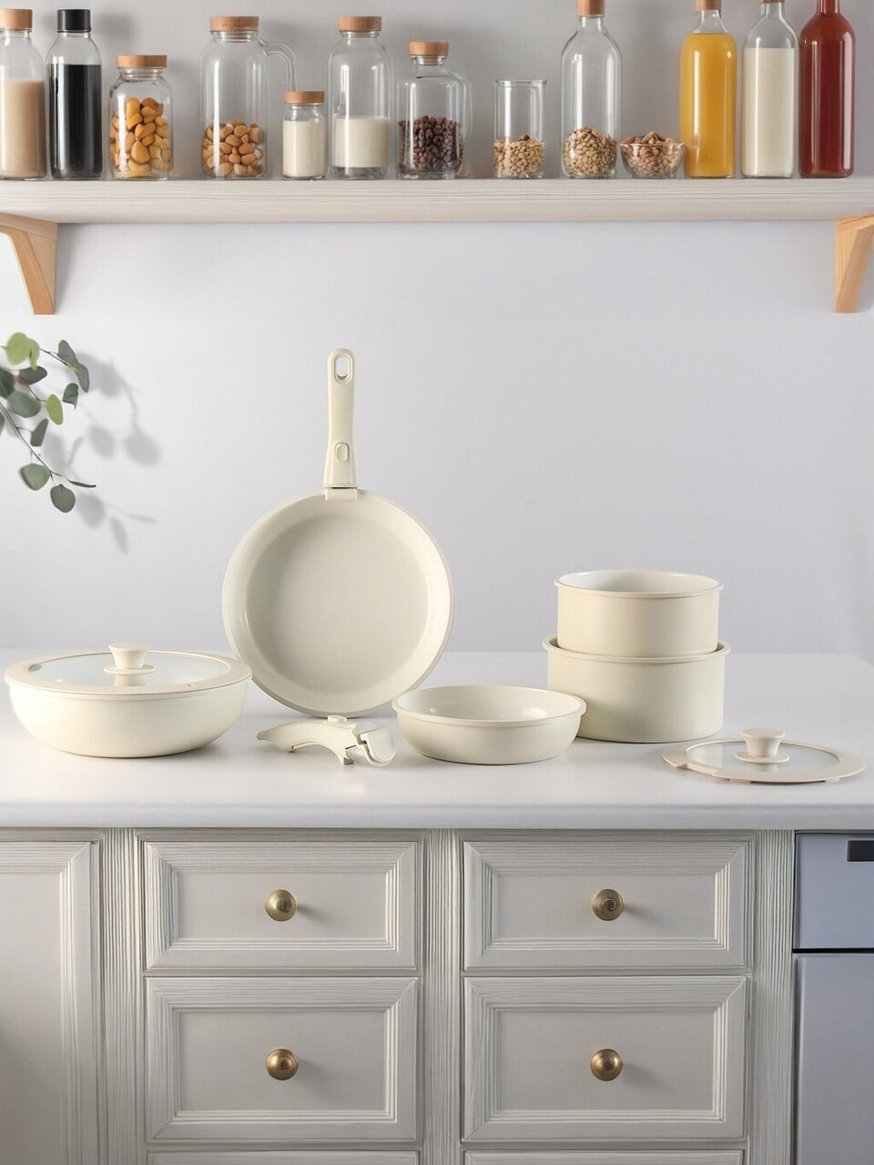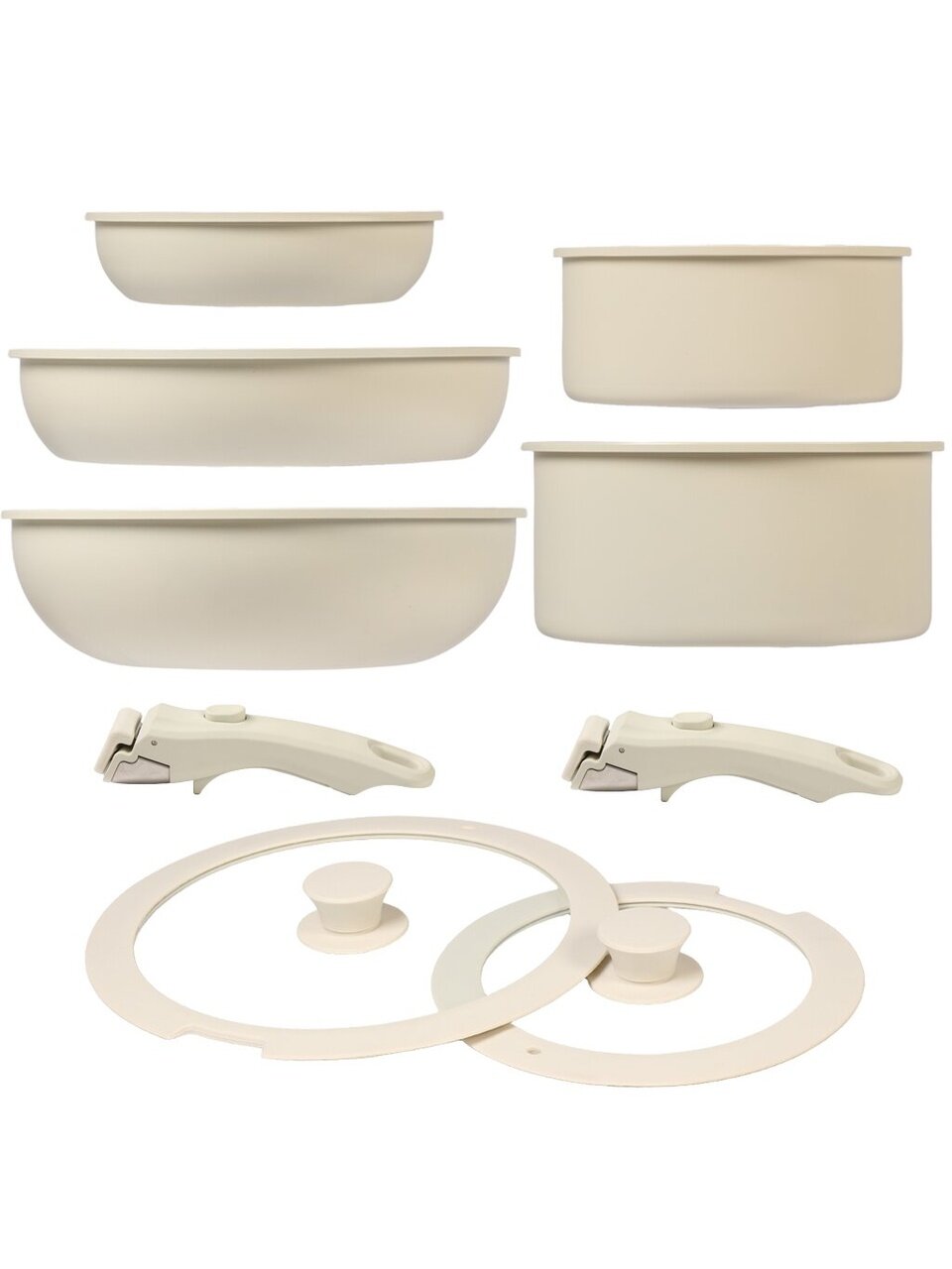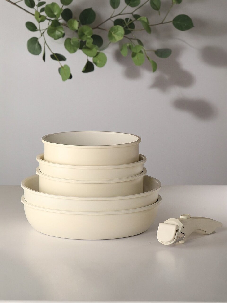 Посуду можно использовать на всех типах плит, включая индукционные, благодаря индукционному диску из стали 430. Это делает набор универсальным и подходящим для любой кухни. Бежевый цвет внешнего жаропрочного покрытия добавит элегантности и стиля в интерьер.