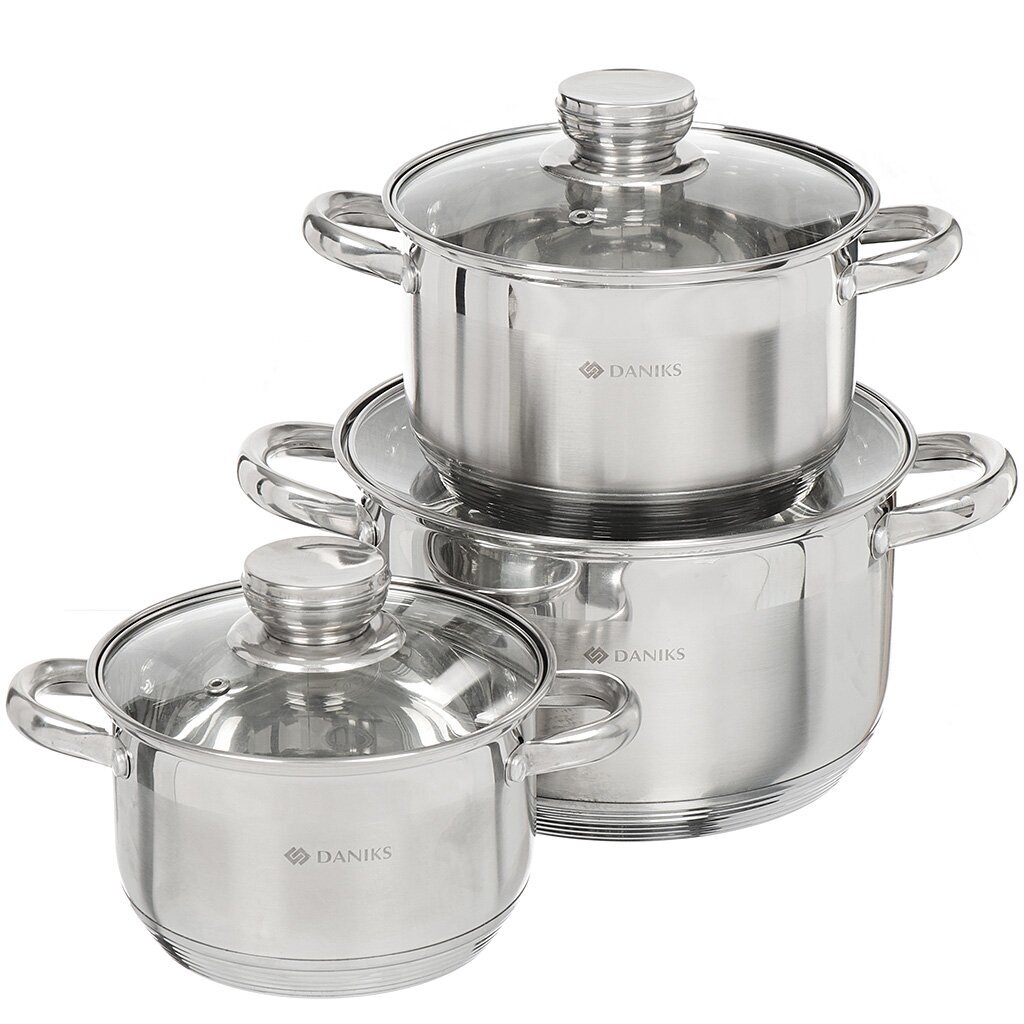 Вы можете приобрести «Набор посуды нержавеющая сталь, 6 предметов, кастрюли 1.9,2.9,4.75 л, индукция, Daniks, Стандарт PR, SD-6-2» и другие товары в нашем интернет-магазине в Таганроге по низким ценам и с бесплатным самовывозом.