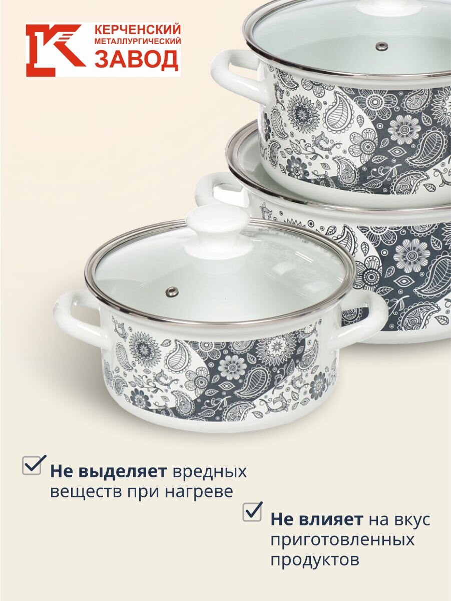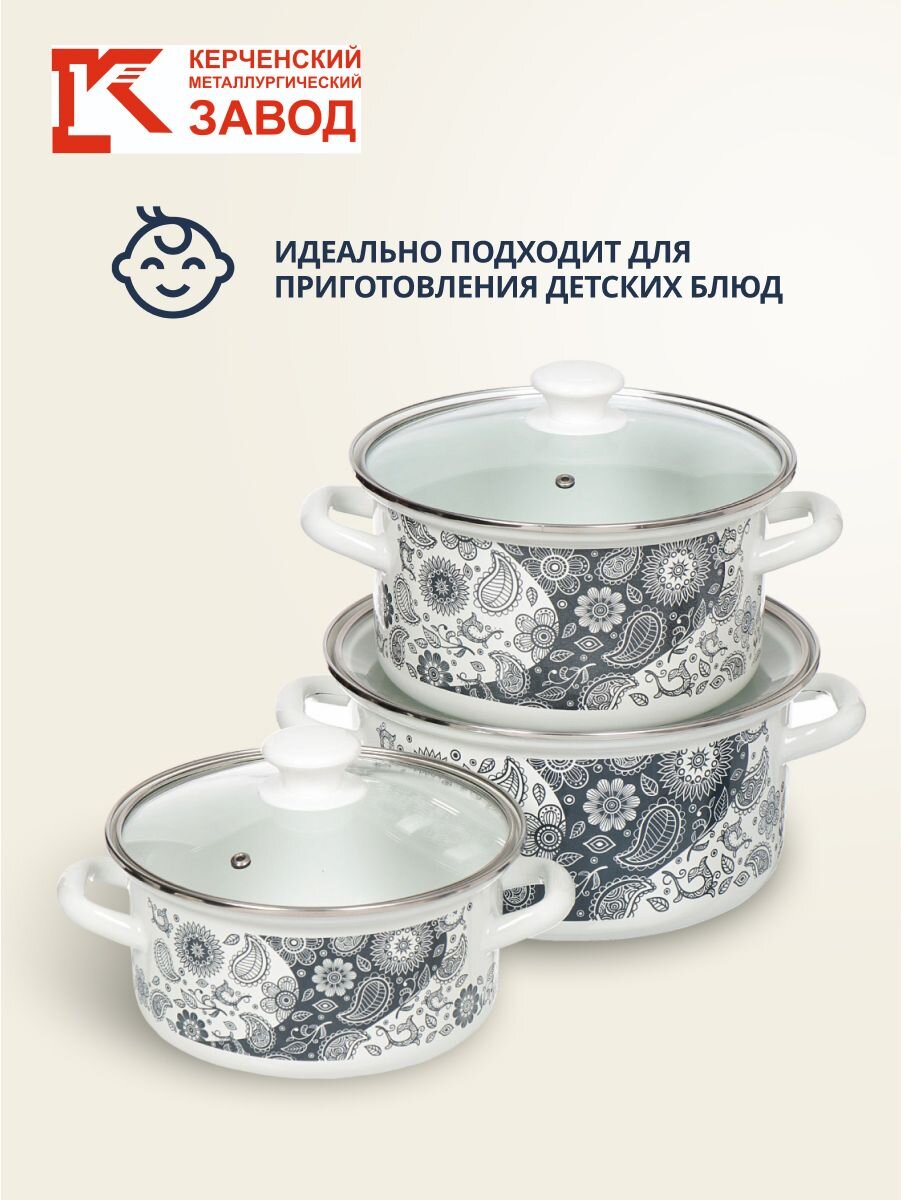 Набор кастрюль 6 предметов Керченский металлургический завод — универсальное решение для дома и дачи: прочная эмалированная сталь, три объёма, стиль «День и ночь-1-Экстра».