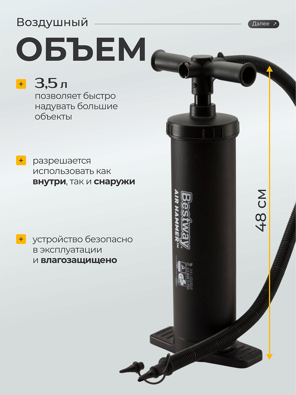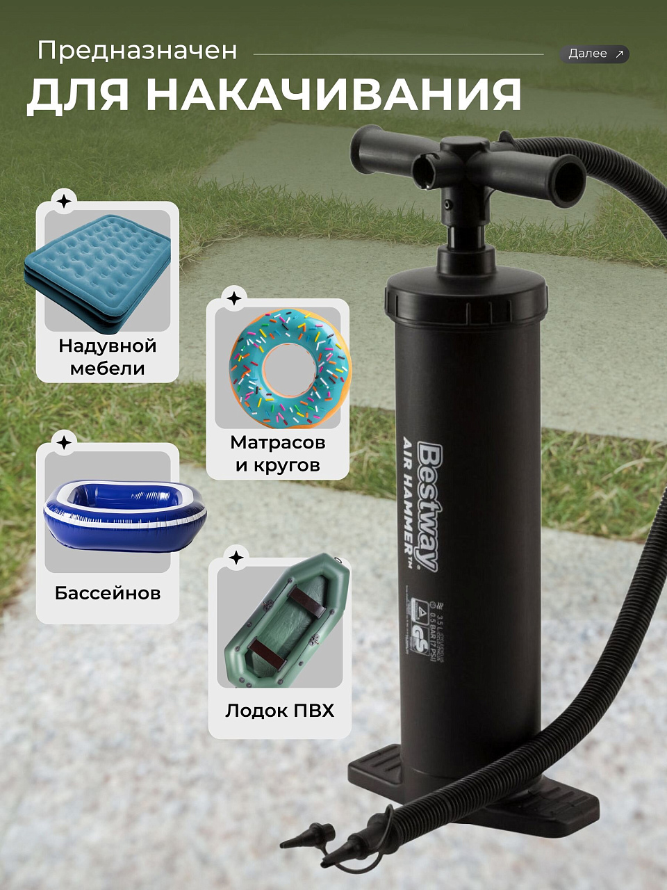 Вы можете приобрести «Насос воздушный ручной, 48 см, 3 насадки, Bestway, 62030» и другие товары в нашем интернет-магазине в Воронеже по низким ценам и с бесплатным самовывозом.