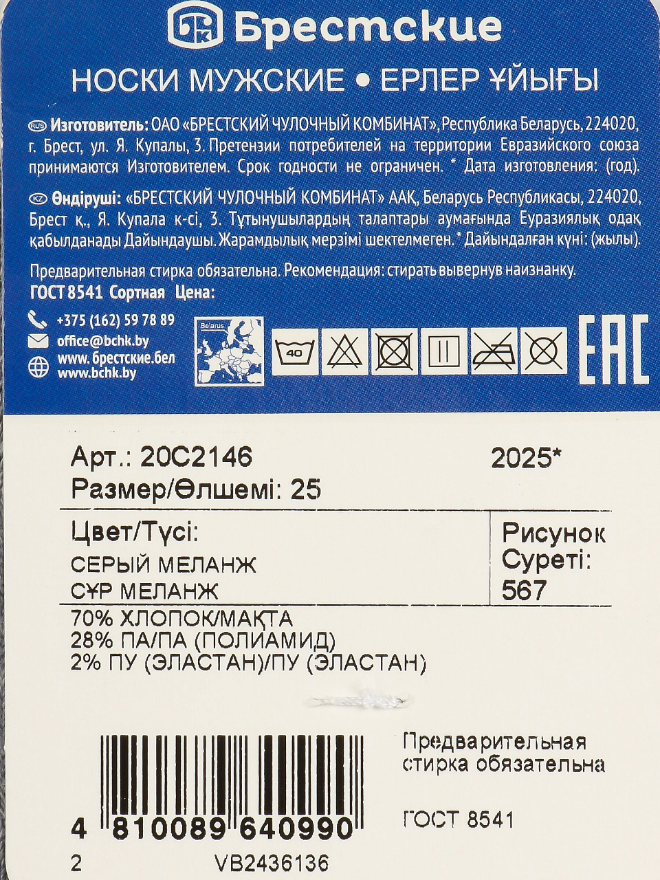 Вы можете приобрести «Носки для мужчин, хлопок, Брестские, Classic New year, 567, серый меланж, р. 25, 20С2146» и другие товары в нашем интернет-магазине в Санкт-Петербургe по низким ценам и с бесплатным самовывозом.