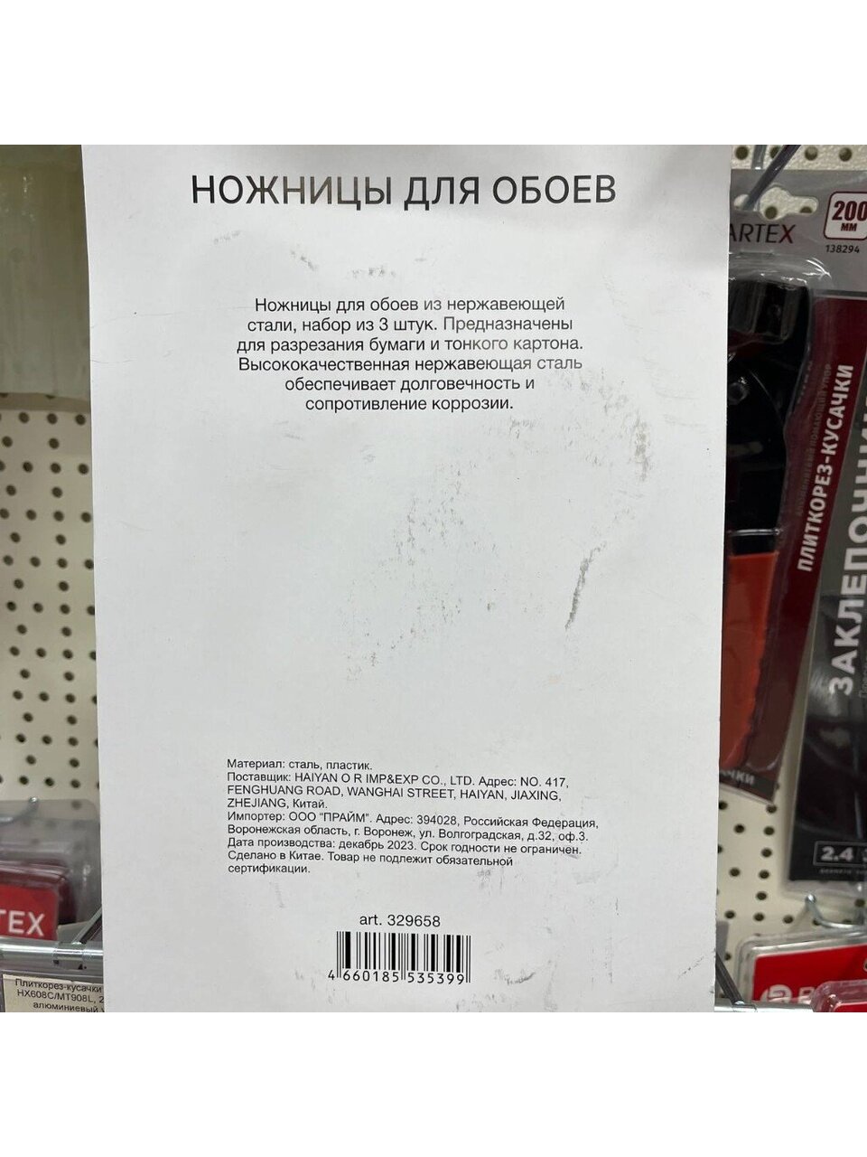 Вы можете приобрести «Ножницы обойные, нержавеющая сталь, набор из 3 шт, Bartex, 1281005» и другие товары в нашем интернет-магазине в Россоши по низким ценам и с бесплатным самовывозом.