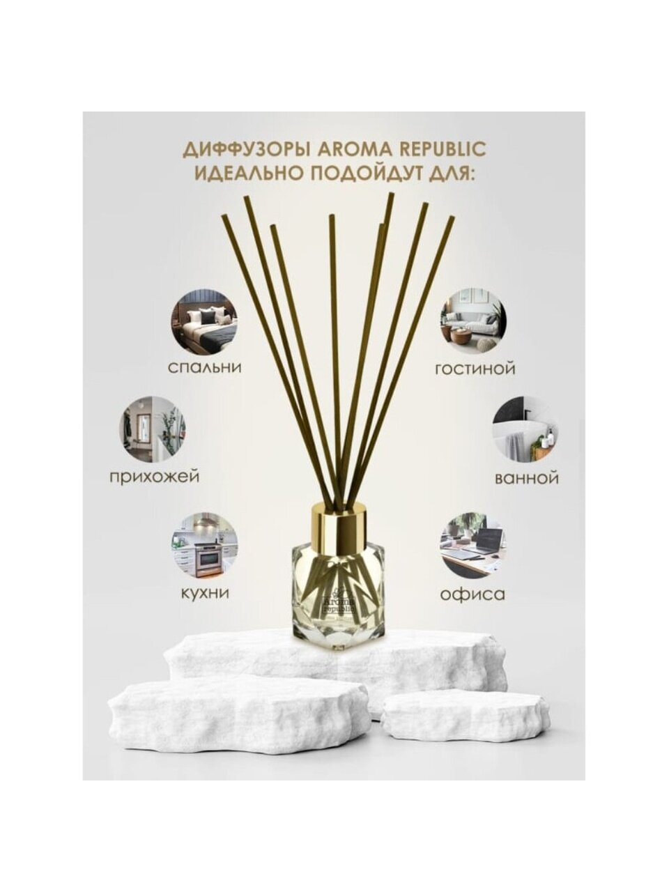 Ароматический диффузор - это безопасный и экологически чистый способ ароматизации помещения. В комплект входят фибровые палочки. Благодаря которым аромат распространяется в помещении. Интенсивность аромата регулируется количеством палочек. Не забывайте переворачивать палочки 1-2 раза в день.