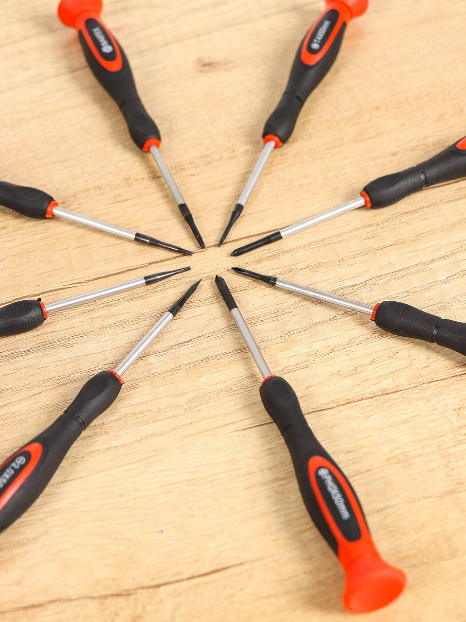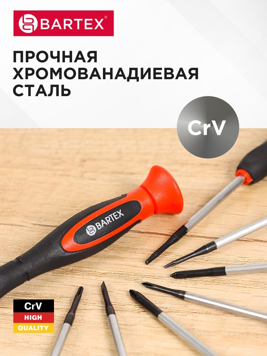 Набор отверток для точных работ Bartex — идеальный выбор для тех, кто ценит надежность и удобство при ремонте мобильных телефонов и другой мелкой электроники. Компактный кейс удобно хранить дома или брать с собой на дачу, чтобы всегда быть готовым к мелкому ремонту. В комплекте 8 высокоточных инструментов: плоские, крестовые и TORX отвертки с различными размерами шлица, что позволяет легко справляться с большинством задач по обслуживанию техники и гаджетов.