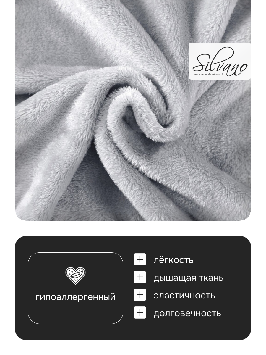 Плед 1.5-спальный Silvano Silvia Однотон 150х200 см: мягкий велсофт жаккард, легкий уход, стильный светло-серый для уюта в доме и на даче.