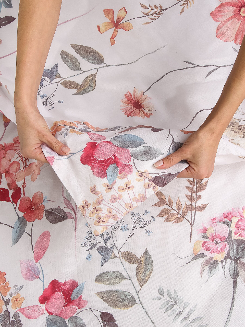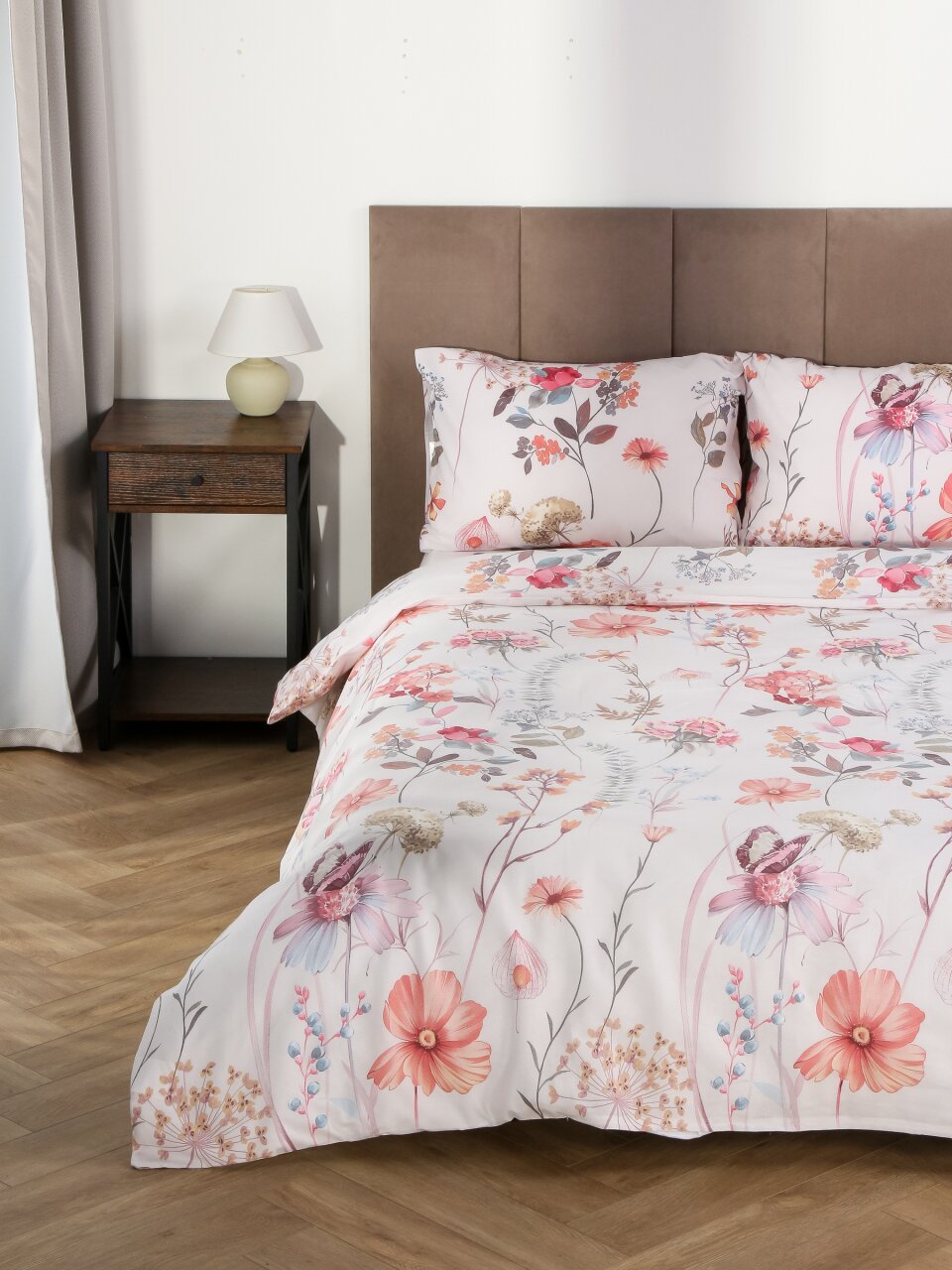Бязь из 100% хлопка долговечна, хорошо пропускает воздух, не вызывает аллергию и устойчива к частым стиркам — идеальный выбор для ежедневного использования дома и на даче.