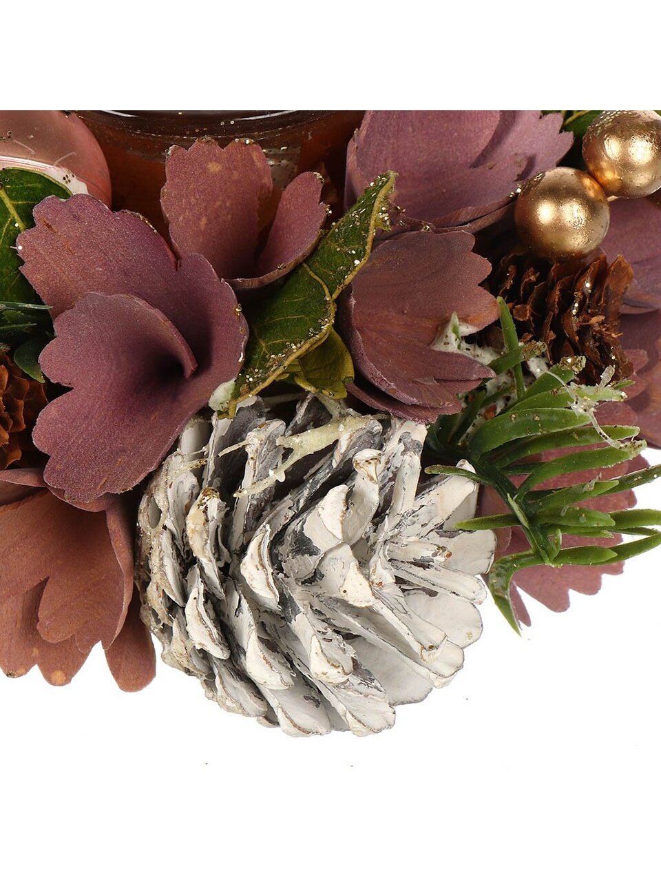 Подсвечник с еловыми ветками и шишками - это оригинальный аксессуар для дома, который может органично дополнить любой интерьер. Если вы хотите создать романтическую или праздничную атмосферу, то этот подсвечник подойдет идеально.
