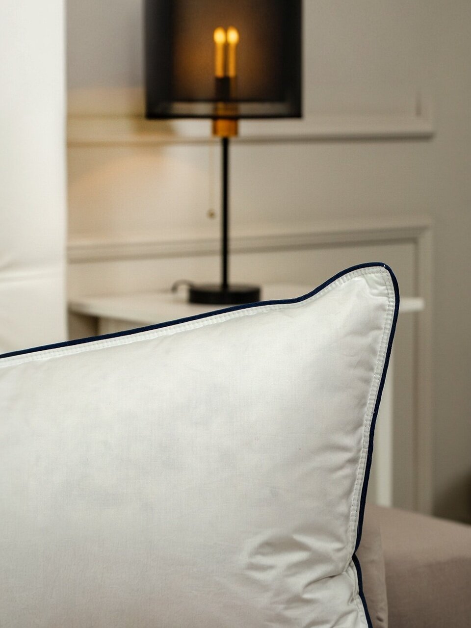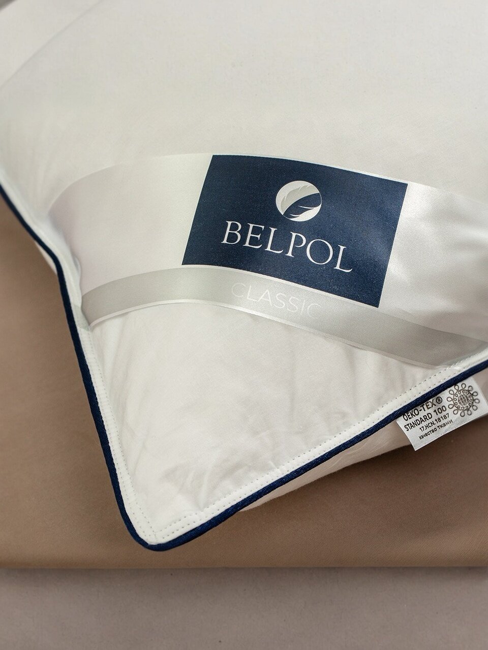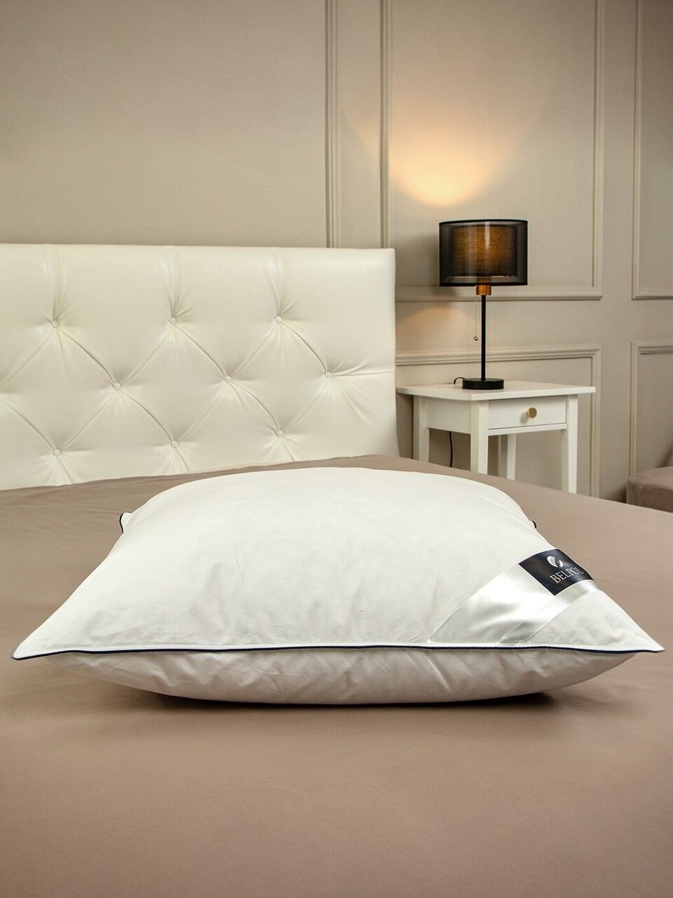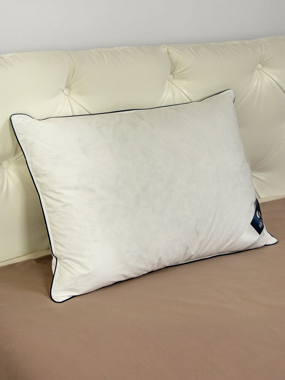Внутри подушки — три отдельных секции с гусиным пухом, что предотвращает сбивание наполнителя и обеспечивает стабильную упругость по всей поверхности.