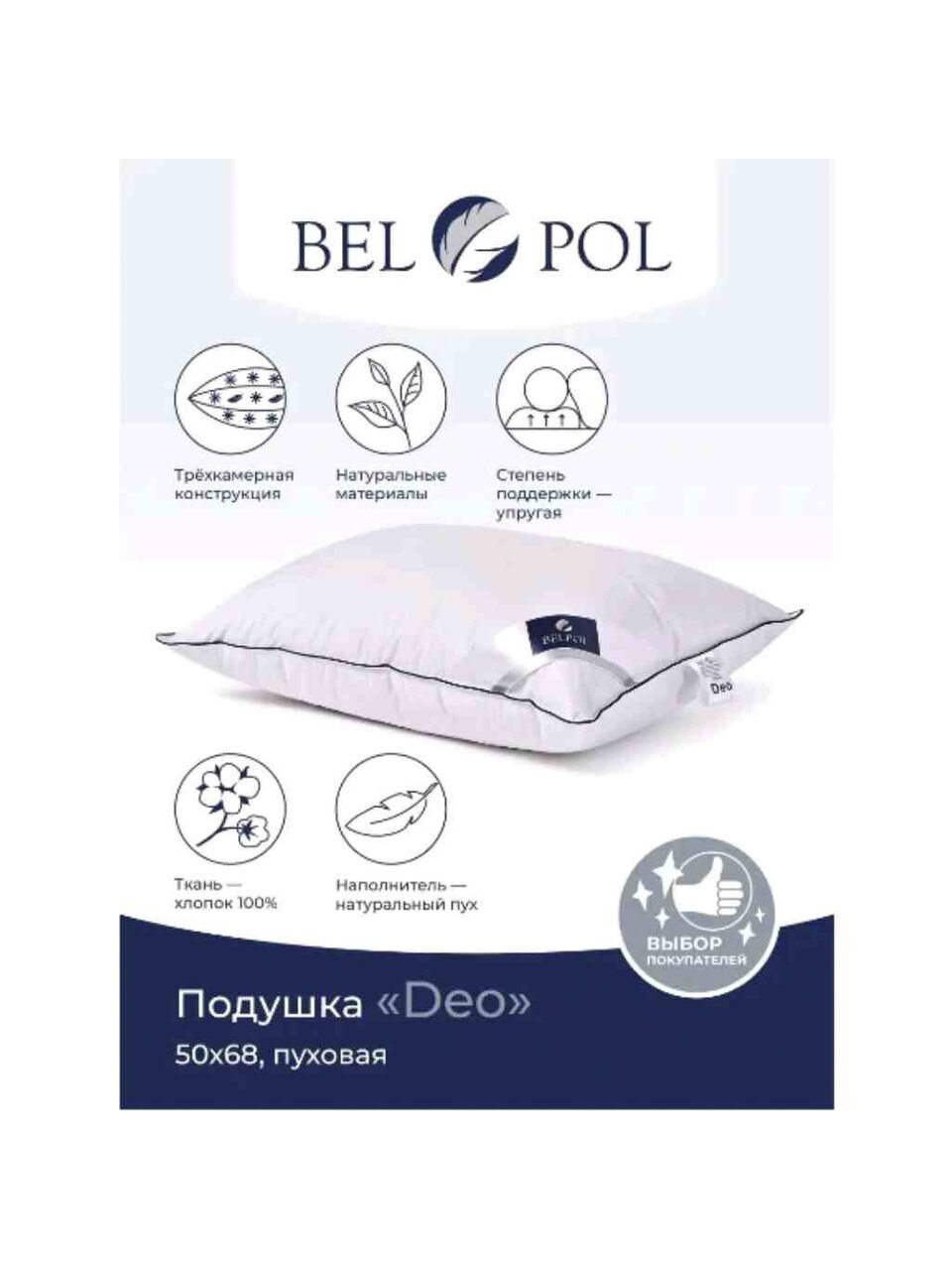 Вы можете приобрести «Подушка 50 х 68 см, гусиный пух, DEO, чехол 100% хлопок, кант, упругая, трехкамерная, Бел-Поль, ПЕдТд-57» и другие товары в нашем интернет-магазине в Санкт-Петербургe по низким ценам и с бесплатным самовывозом.
