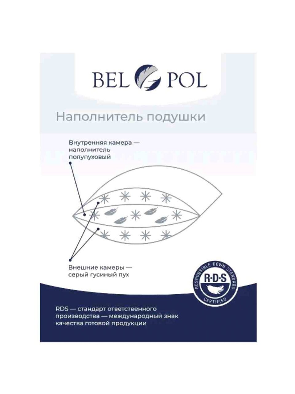 - Трехкамерная конструкция с гусиным пухом — оптимальный баланс упругости и мягкости для комфортного сна