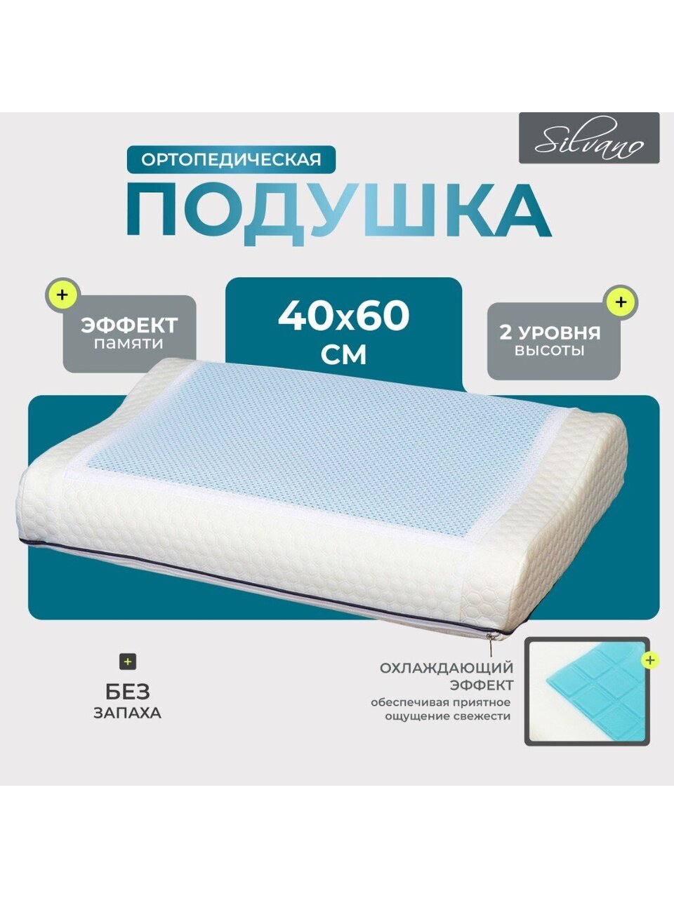 Ортопедическая подушка Silvano 40x60 с эффектом памяти: мягкая поддержка для здорового сна, гипоаллергенный чехол, оптимальная высота для комфорта шеи и спины.