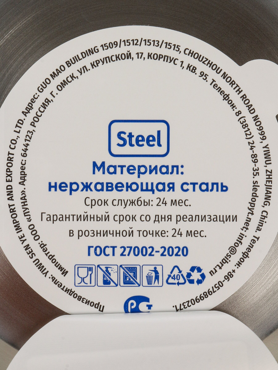 - Нержавеющая сталь 19.5 см, объём 1.2 л — устойчивость к коррозии, легко мыть, срок службы до 10 лет