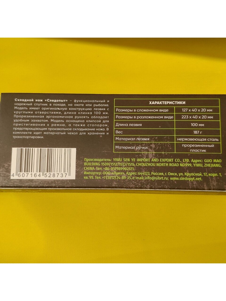 Нож складной туристический Следопыт - это надежный спутник в любом путешествии, будь то поход, охота или рыбалка. Этот нож обладает всеми необходимыми качествами для того, чтобы стать незаменимым помощником в любых условиях. Нож имеет складную конструкцию, что делает его компактным и удобным для хранения и транспортировки. В сложенном виде он занимает минимум места и легко помещается в карман или рюкзак.