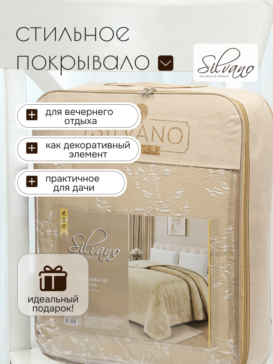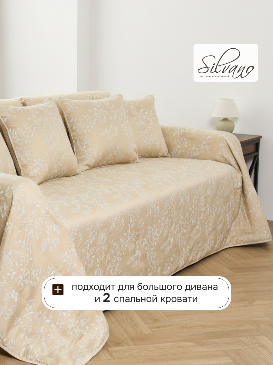 Покрывало евро 240x260 см Silvano Валери: стильный кремовый акцент для спальни, защита мебели и уют без лишних забот. Идеально для подарка и дома.
