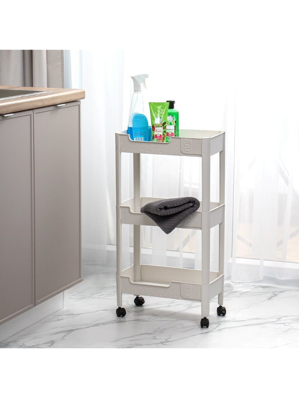 Полка универсальная, пластик, 3 секции, 38.5х21х70.5 см, на колесах, Y4-9243