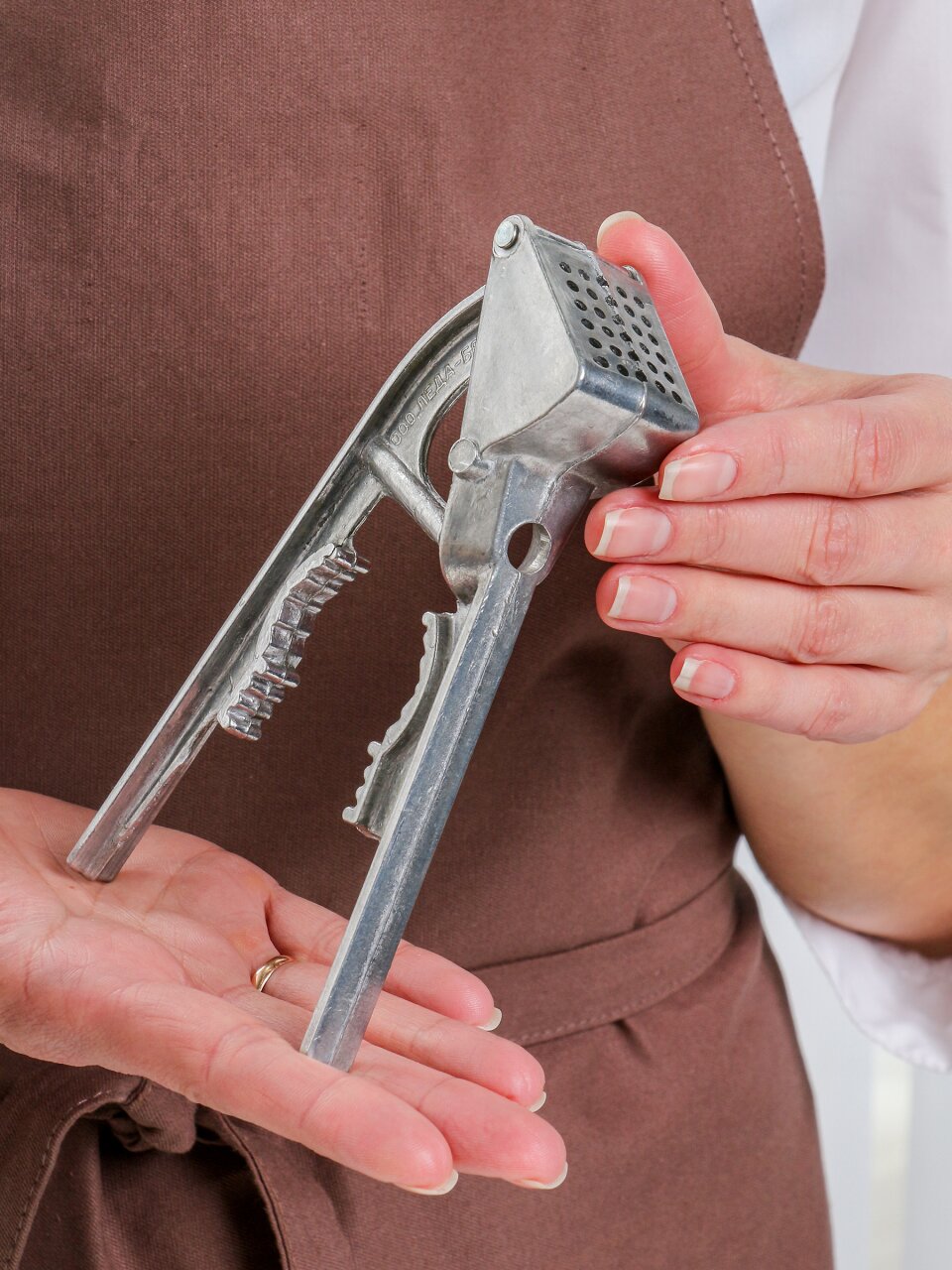 Пресс для чеснока – лучший помощник каждой хозяйки. Изделие выполнено из высококачественного материала, устойчивого к сокам продуктов. Благодаря простой и надежной конструкции прибор позволяет без особых усилий измельчить дольки чеснока без остатка. После использования отверстия легко прочищаются.