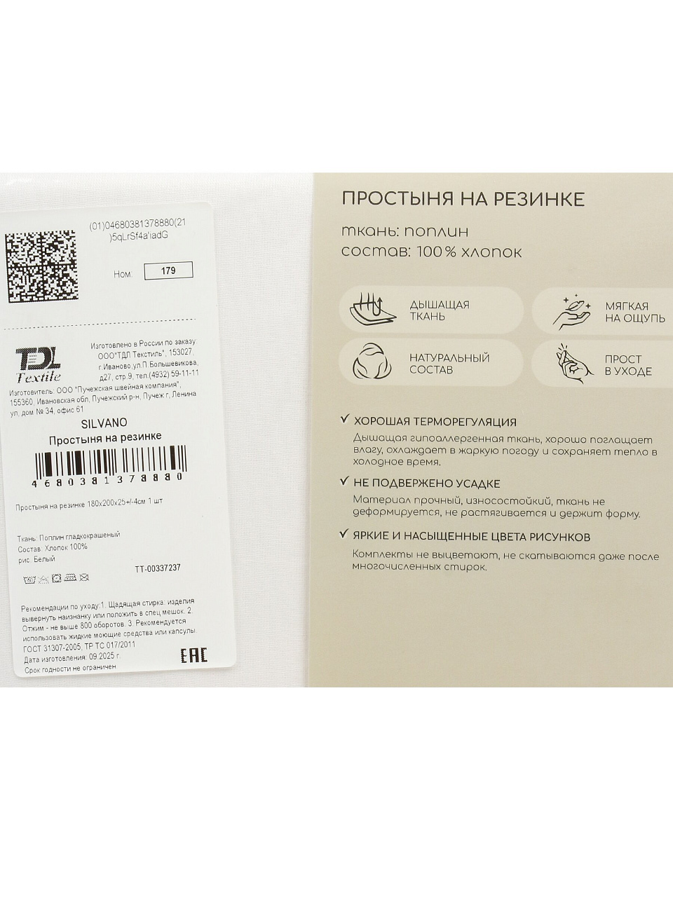 Простыня Silvano евро 180х200х25 см на резинке: 100% хлопок-поплин, идеально садится на матрас, не сползает, подходит для дома и дачи.
