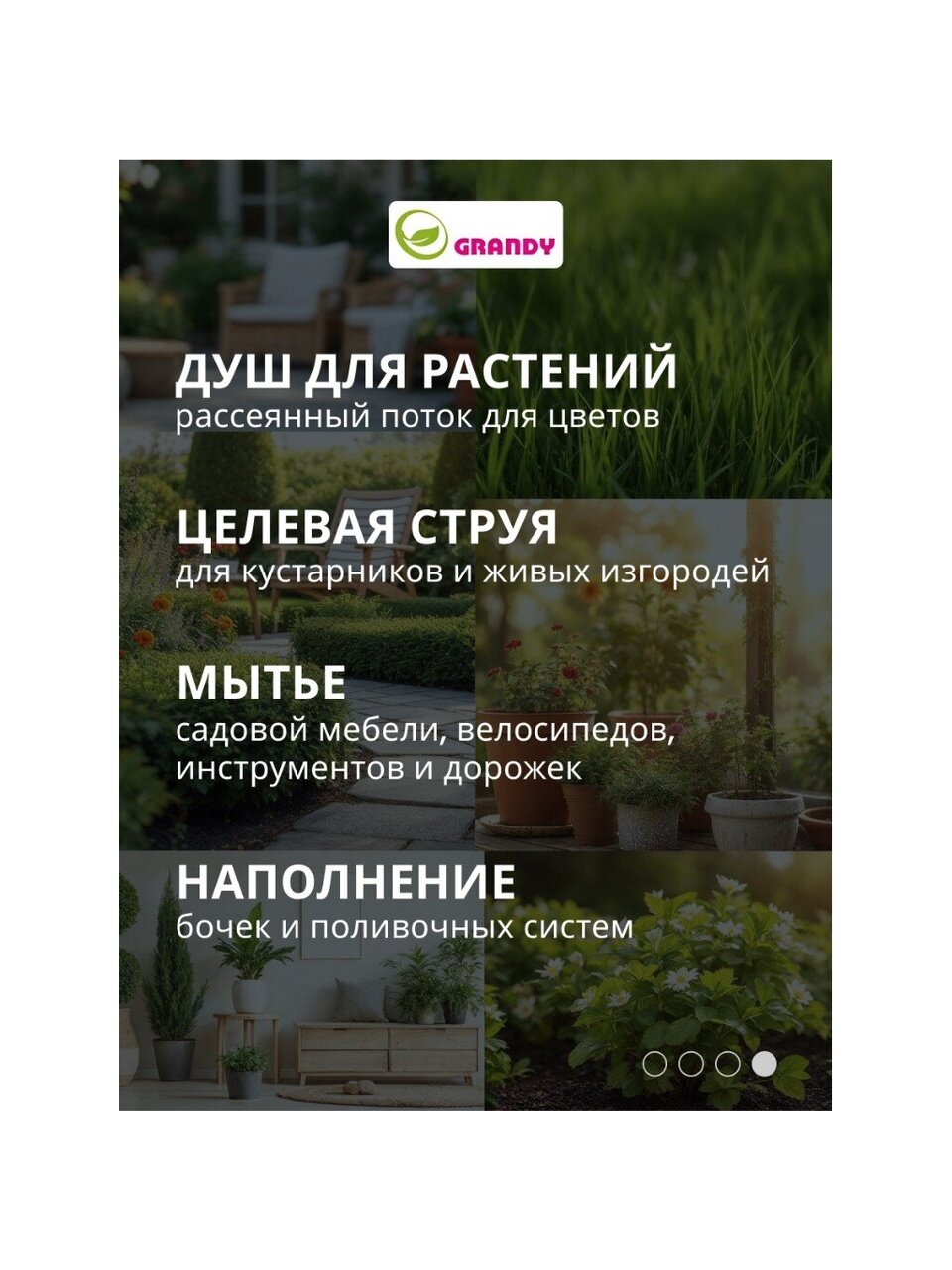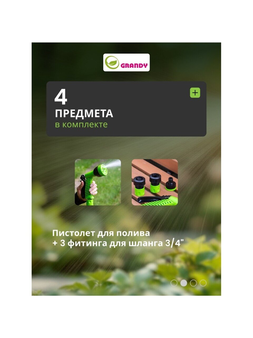 Покупка набора Grandy JS-9366 позволяет сделать полив эффективным и удобным, снижая затраты времени и сил на уход за участком.