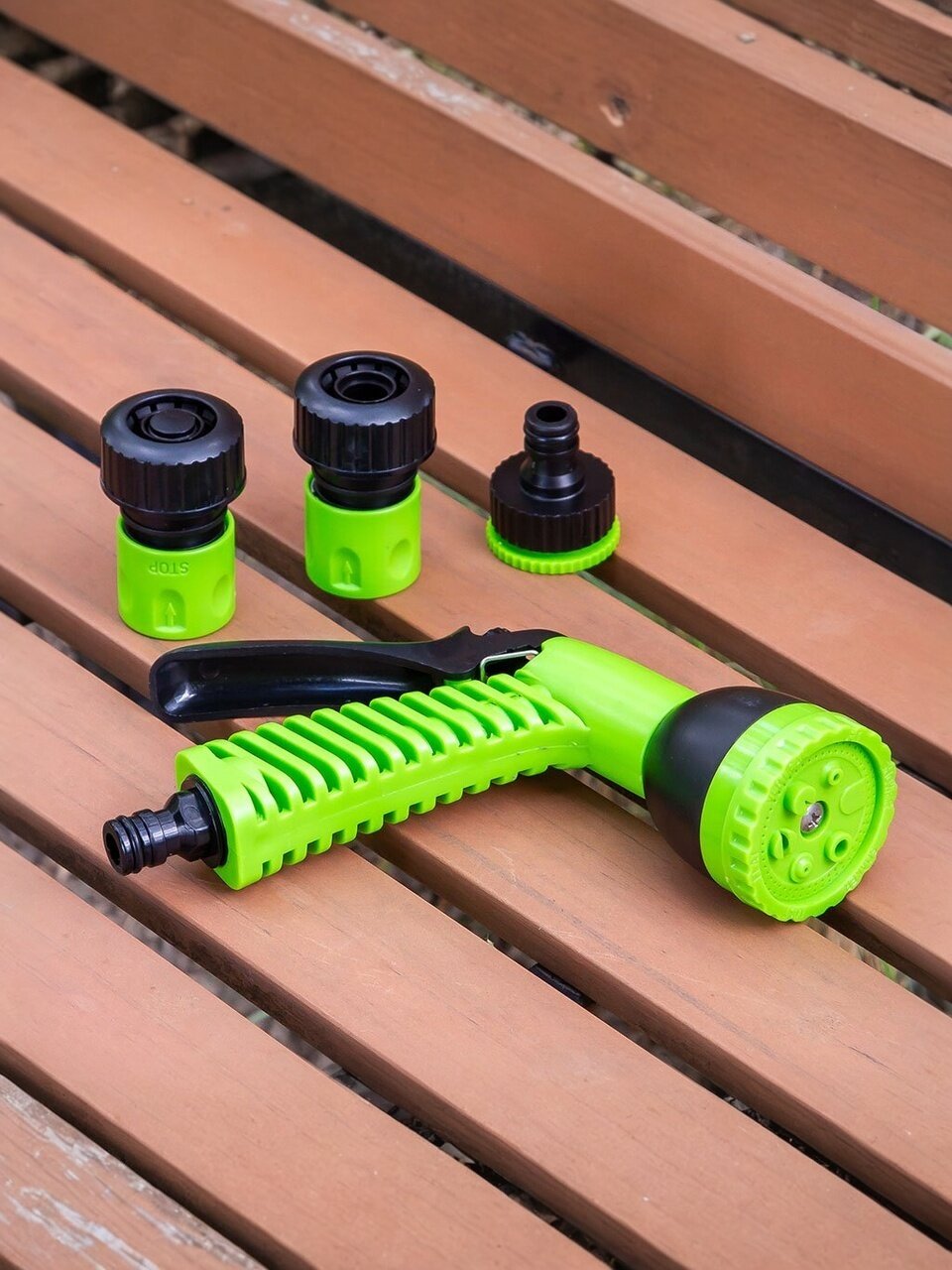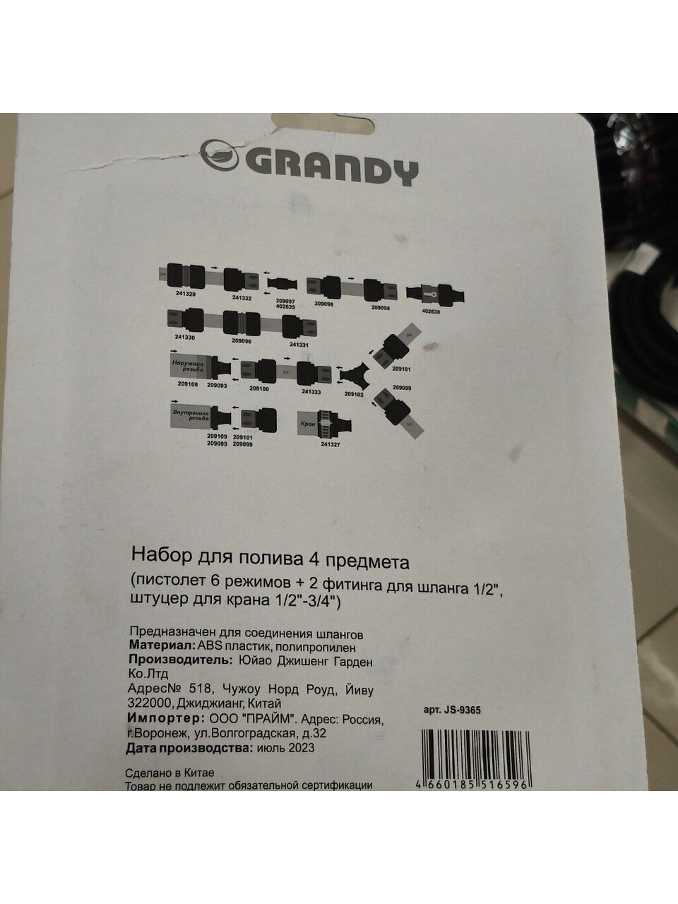 Вы можете приобрести «Набор для полива пистолет 6 режимов, фитинги для шланга 3/4", штуцер для крана 1/2"-3/4", с наружней резьбой, Grandy, JS-9366» и другие товары в нашем интернет-магазине в Астрахани по низким ценам и с бесплатным самовывозом.