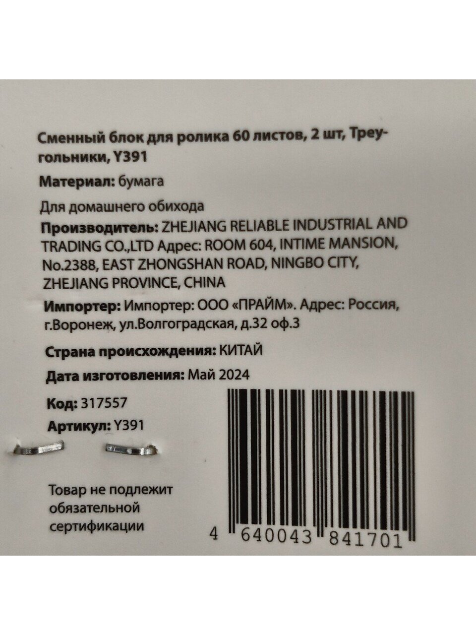 Вы можете приобрести «Сменный блок для ролика 60 листов, 2 шт, Треугольники, Y391» и другие товары в нашем интернет-магазине в Брянске по низким ценам и с бесплатным самовывозом.