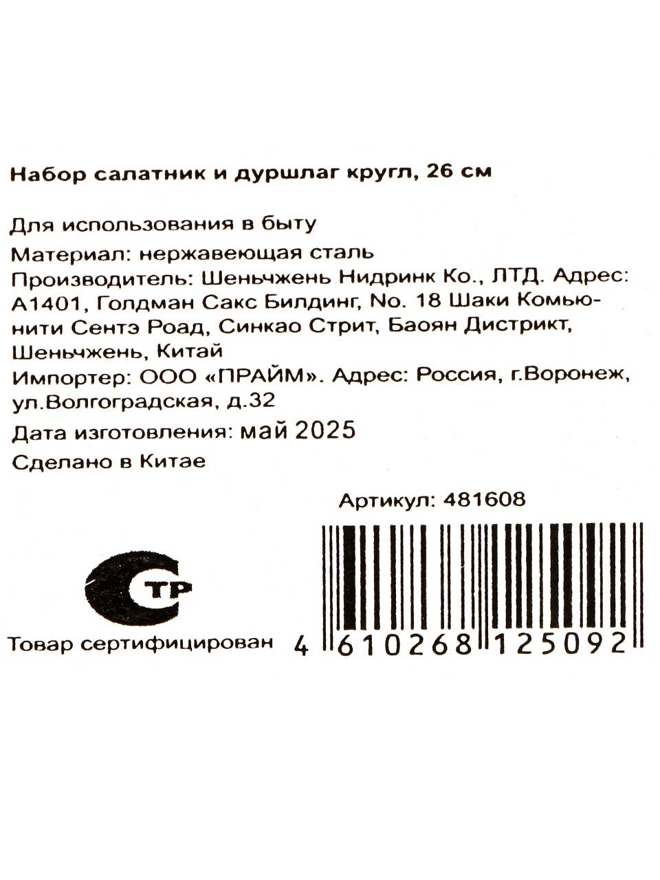 Вы можете приобрести «Набор салатник и дуршлаг нержавеющая сталь, круглый, 26х11 см, Y4-8686» и другие товары в нашем интернет-магазине в Ельце по низким ценам и с бесплатным самовывозом.