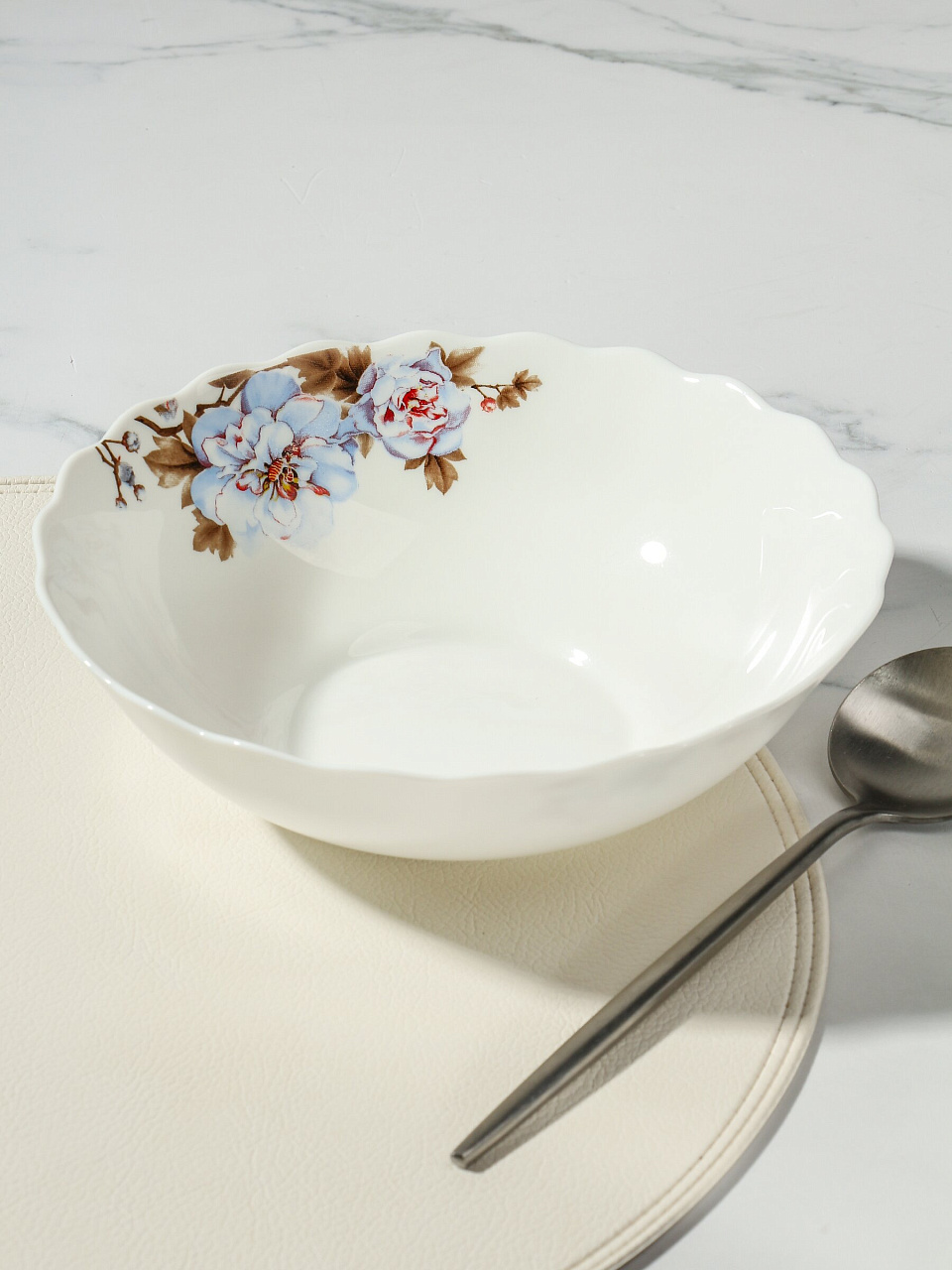 - Уникальный дизайн: белый салатник с цветочным рисунком гармонично впишется в любой интерьер и подчеркнёт атмосферу уюта.